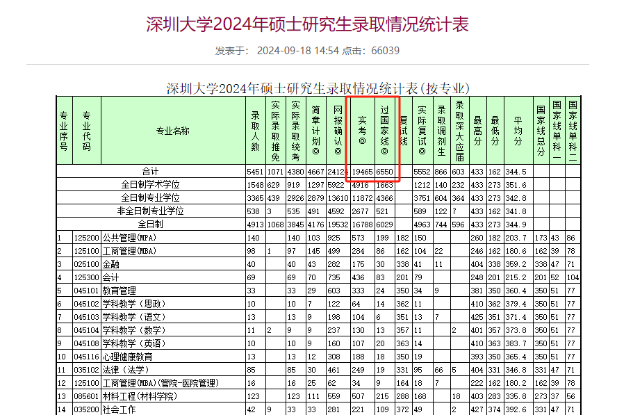 24考研中,深大19465人实考,但仅有6550人过国家线,过线率为33.65%!