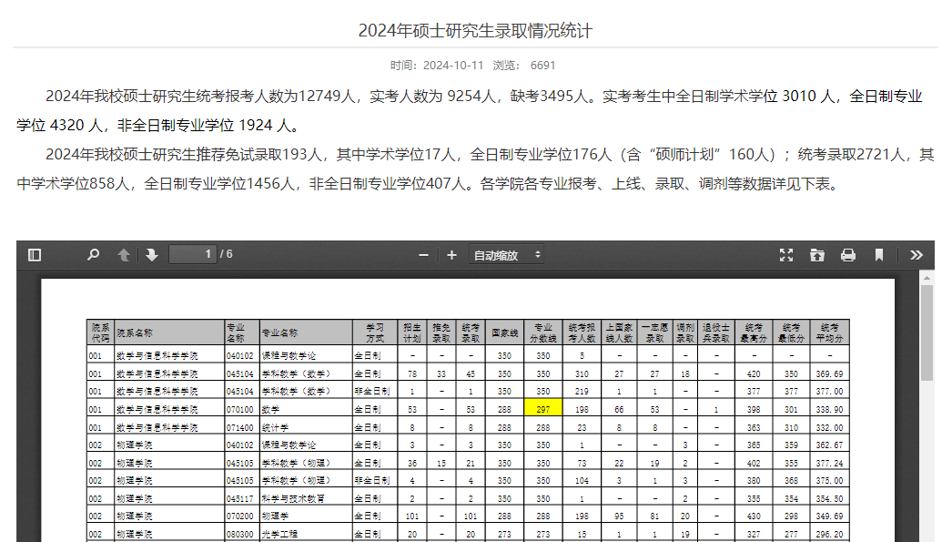 24考研统考人数为12749人,实考人数为9254人,过国家线人数2743人,过线率为29.6%。