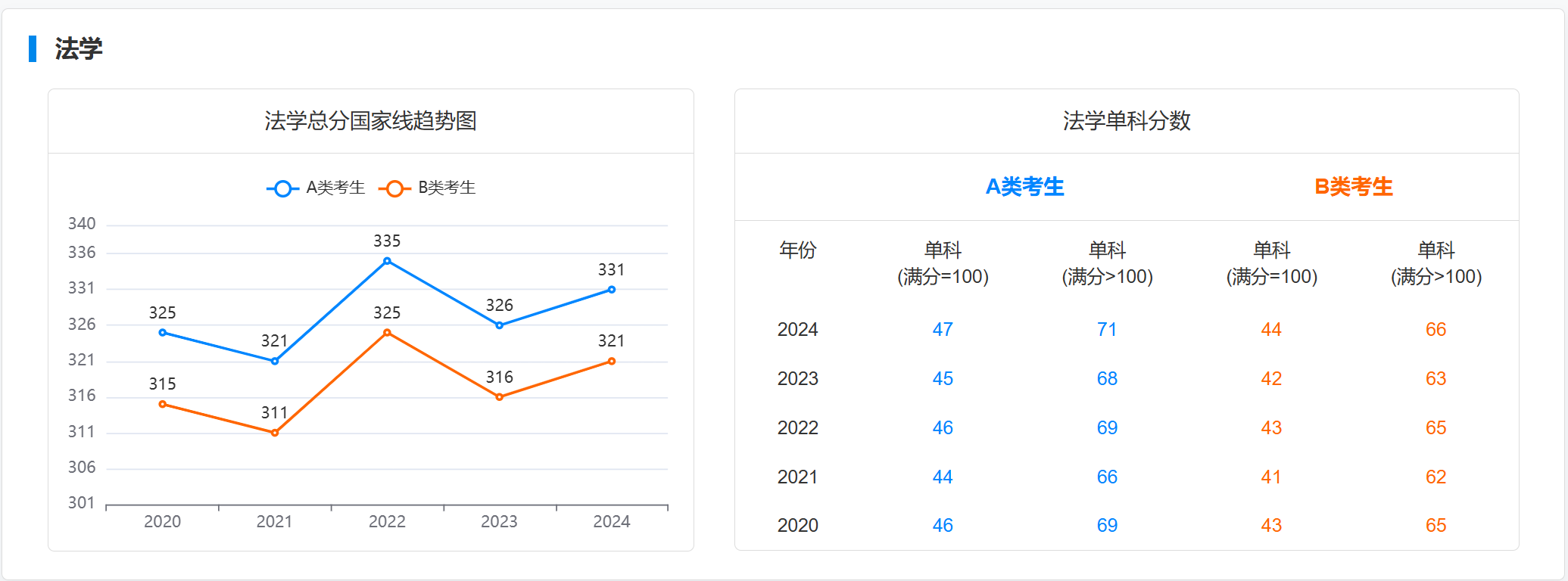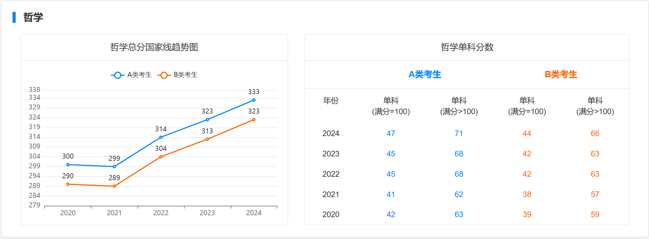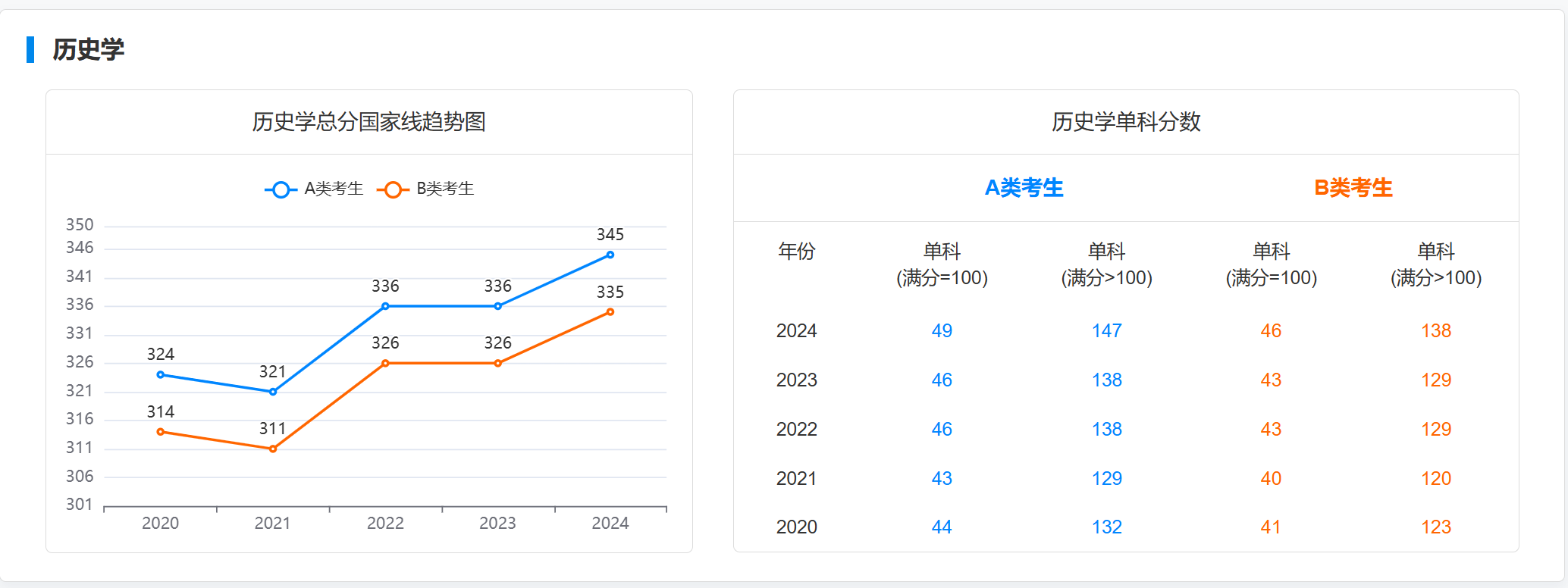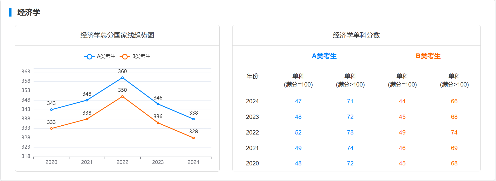 一、近五年考研国家线趋势图