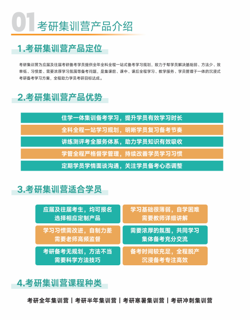 26考研全年集训营将于25年3月份左右开始上课,一直持续到25年11月底。全程线下集中培训,能够满足一战、二战,计划长线备考,想要吃住学一体、需要强跟盯以及提高学习效率的同学。产品设置从基础开始,逐步提升,保障学生的学习效果和体验。