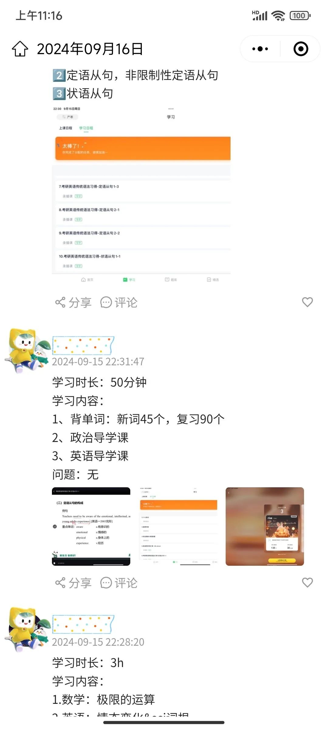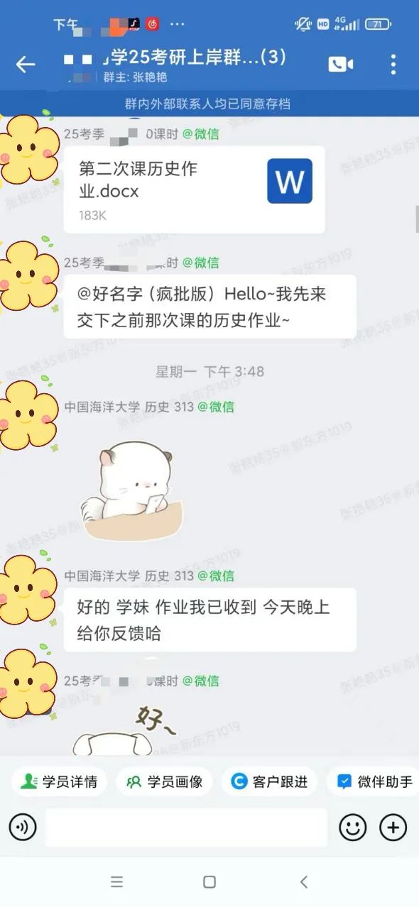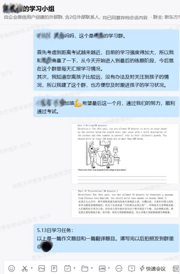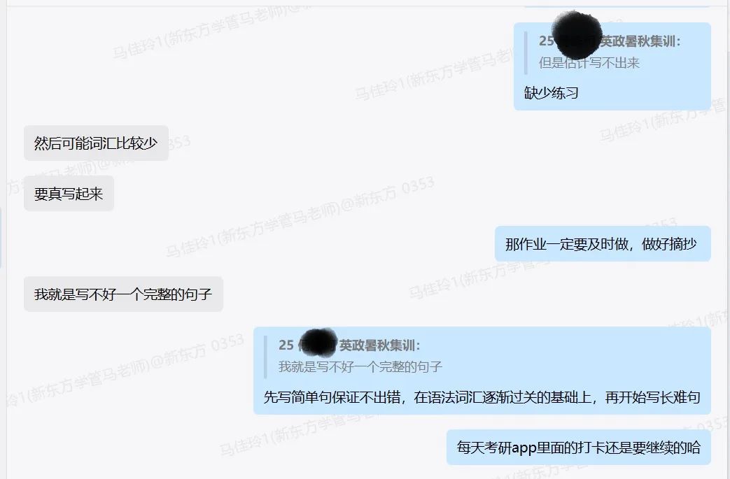 新东方考研全年集训营配套了完整的学管师督学辅导服务,通过出勤跟盯、学习打卡、随堂测试、督学反馈、心态调节等多元方式,帮助学生不断找到学习的成就感,在成就感的驱使下自然而然坚持下去。