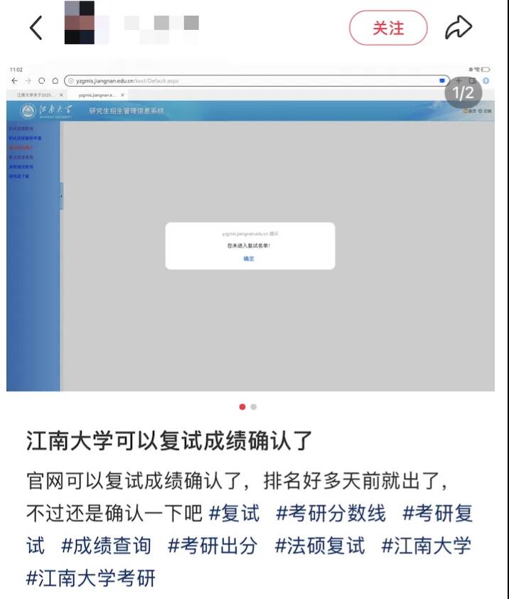 学姐看到,有备考江南大学的同学说自己目标院校官网可以进行复试确认了,自己并没有进入复试?