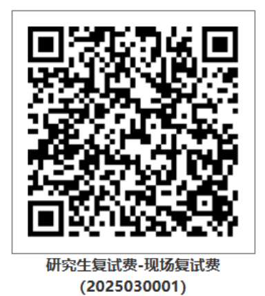 现场复试:一志愿复试使用微信扫描下示二维码缴费(注:缴费后,考生需保留并打印缴费单据凭证,与资格审查材料一并提交。)