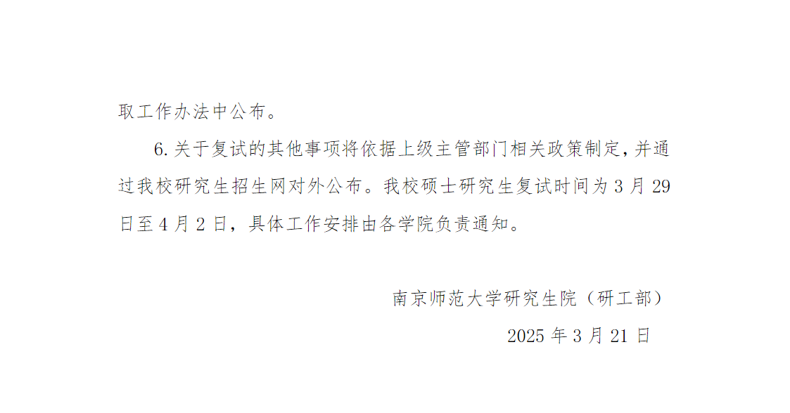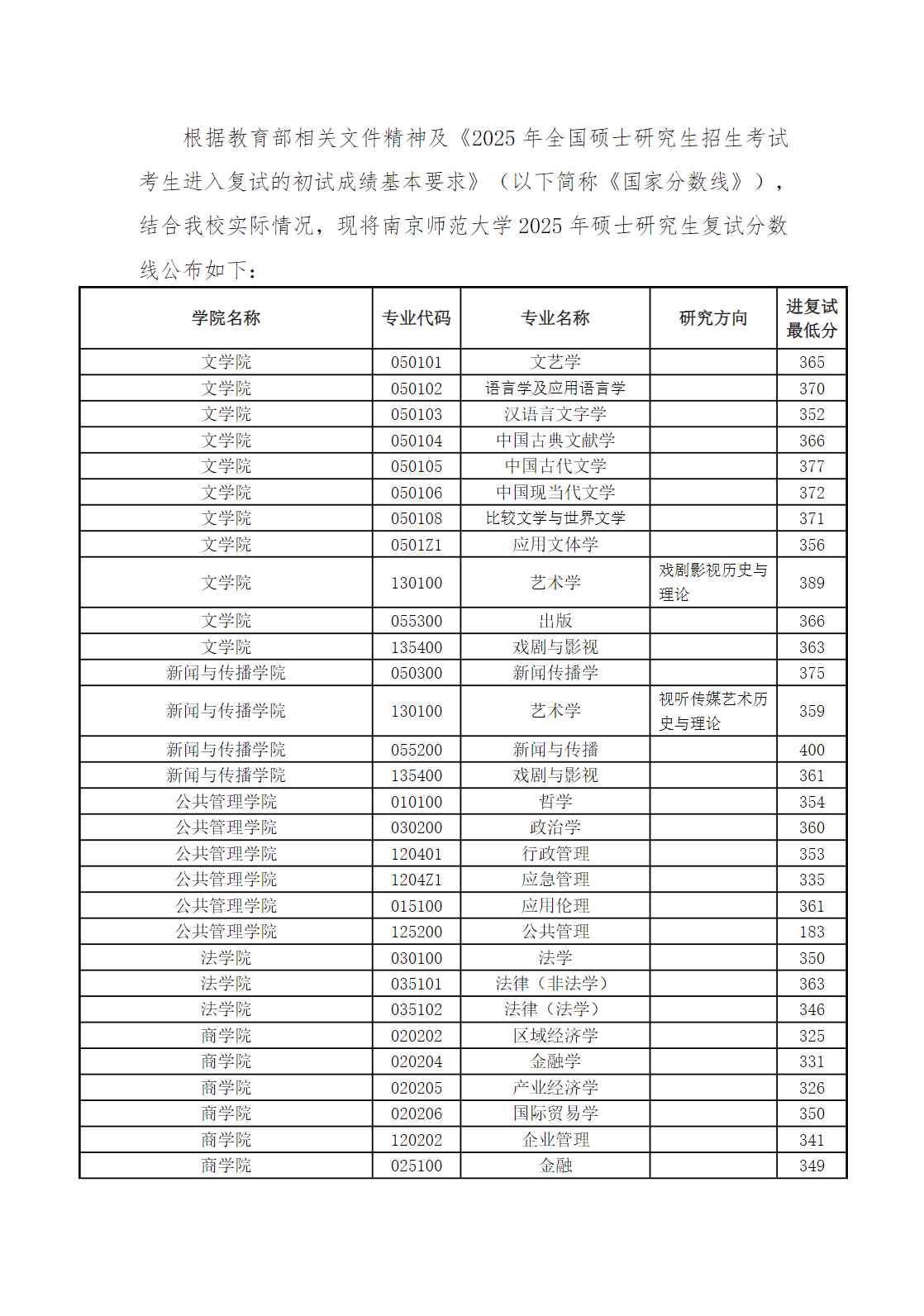 关于公布南京师范大学2025年硕士研究生复试分数线的通知