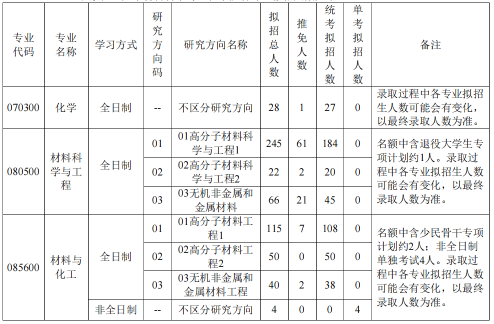 北京化工大学材料科学与工程学院各专业拟招人数如下: