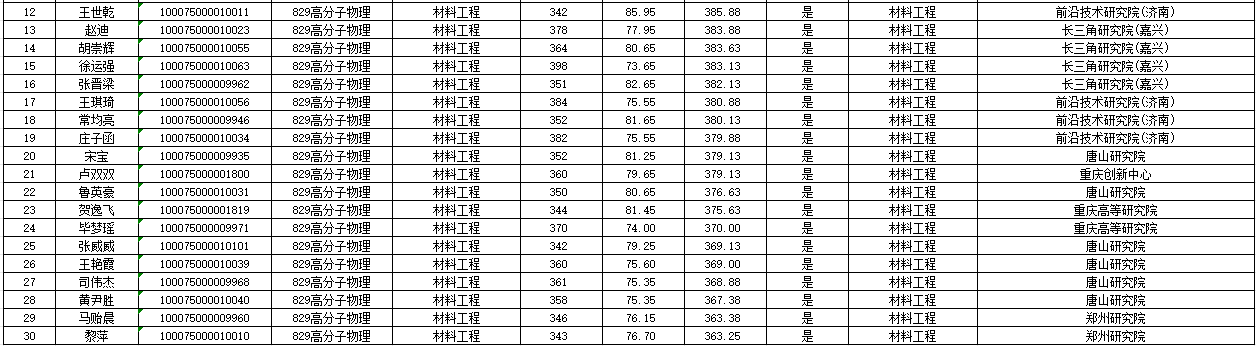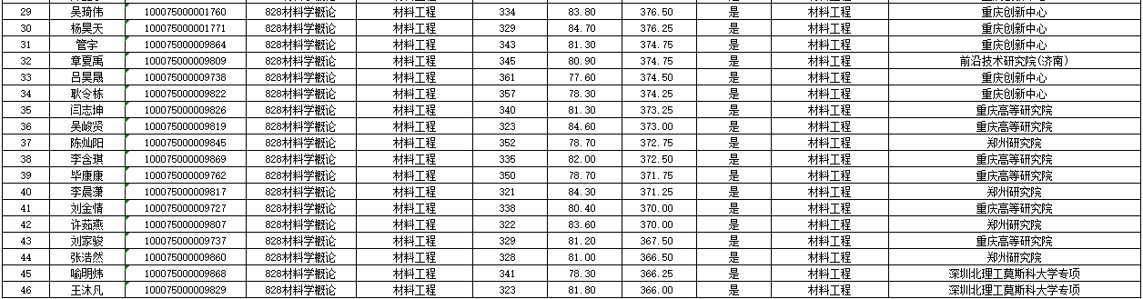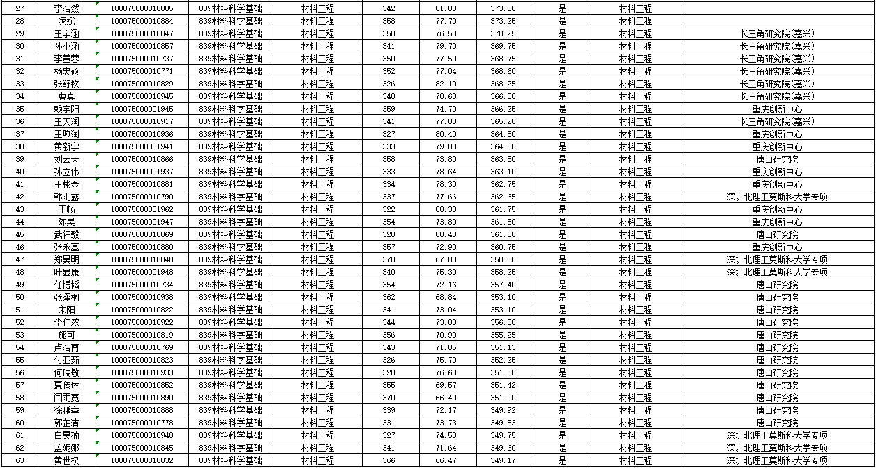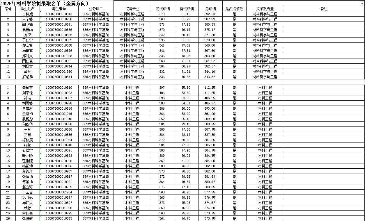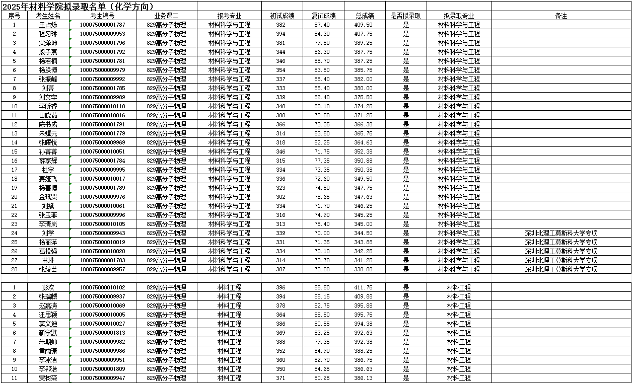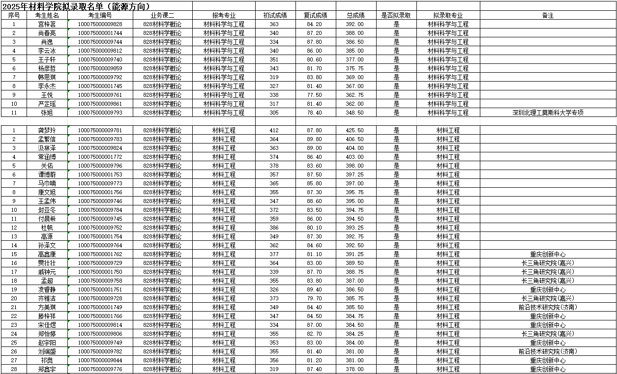北京理工大学材料学院2025年硕士研究生拟录取名单公示