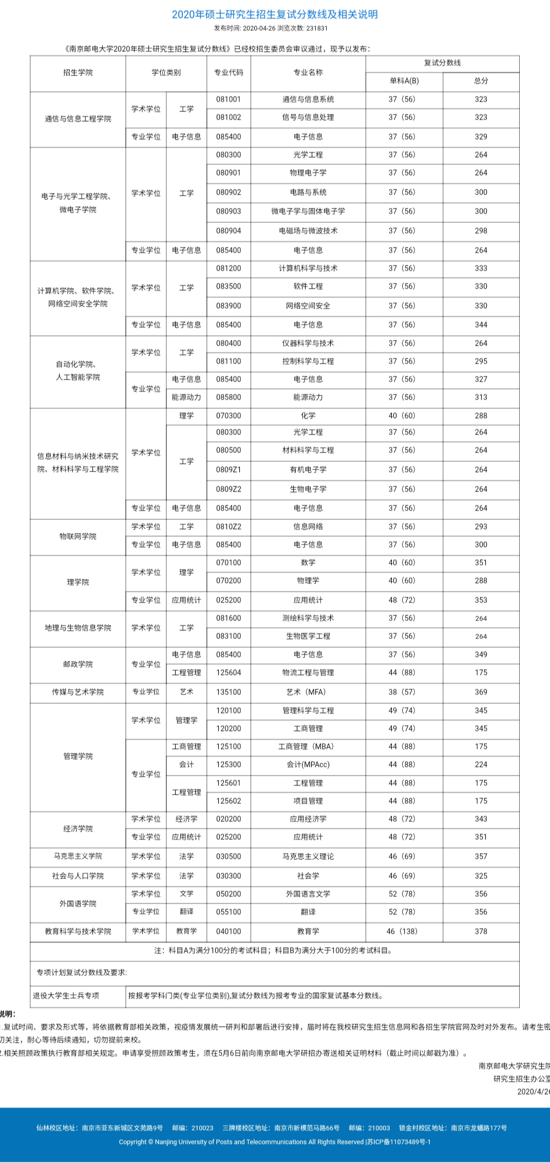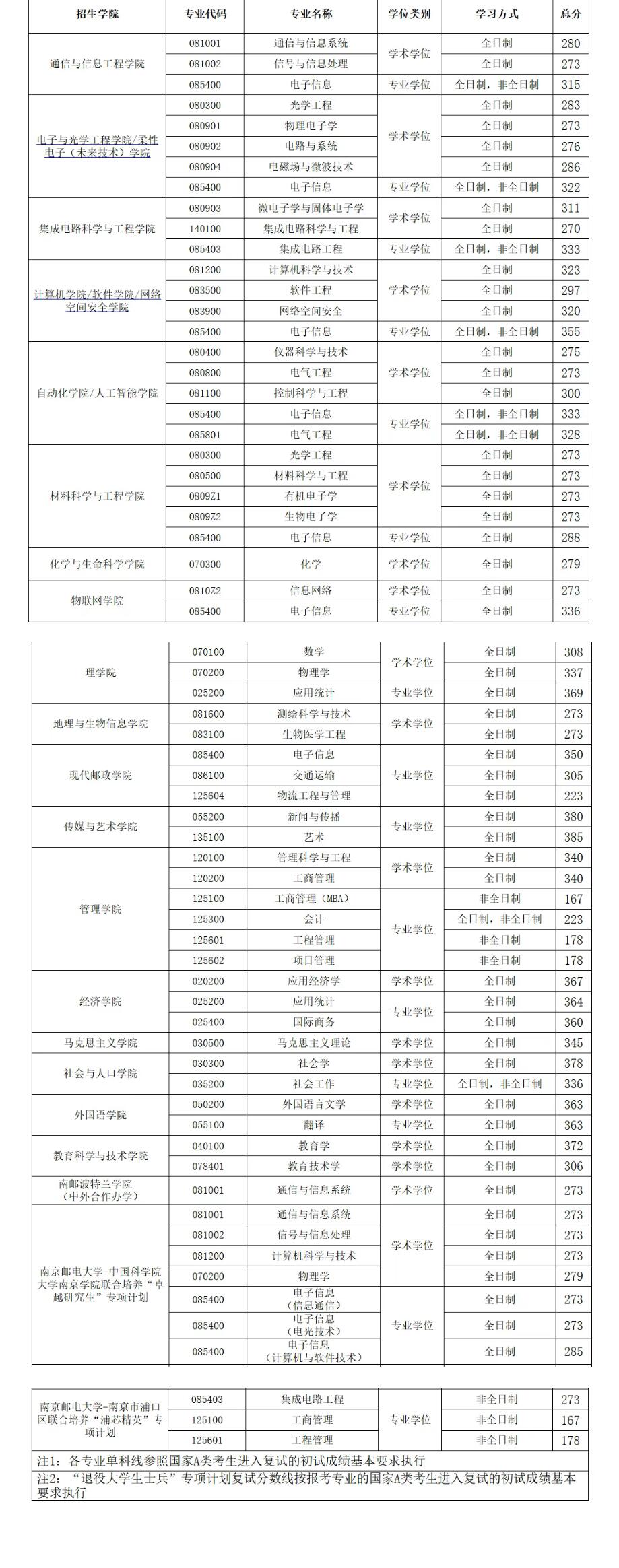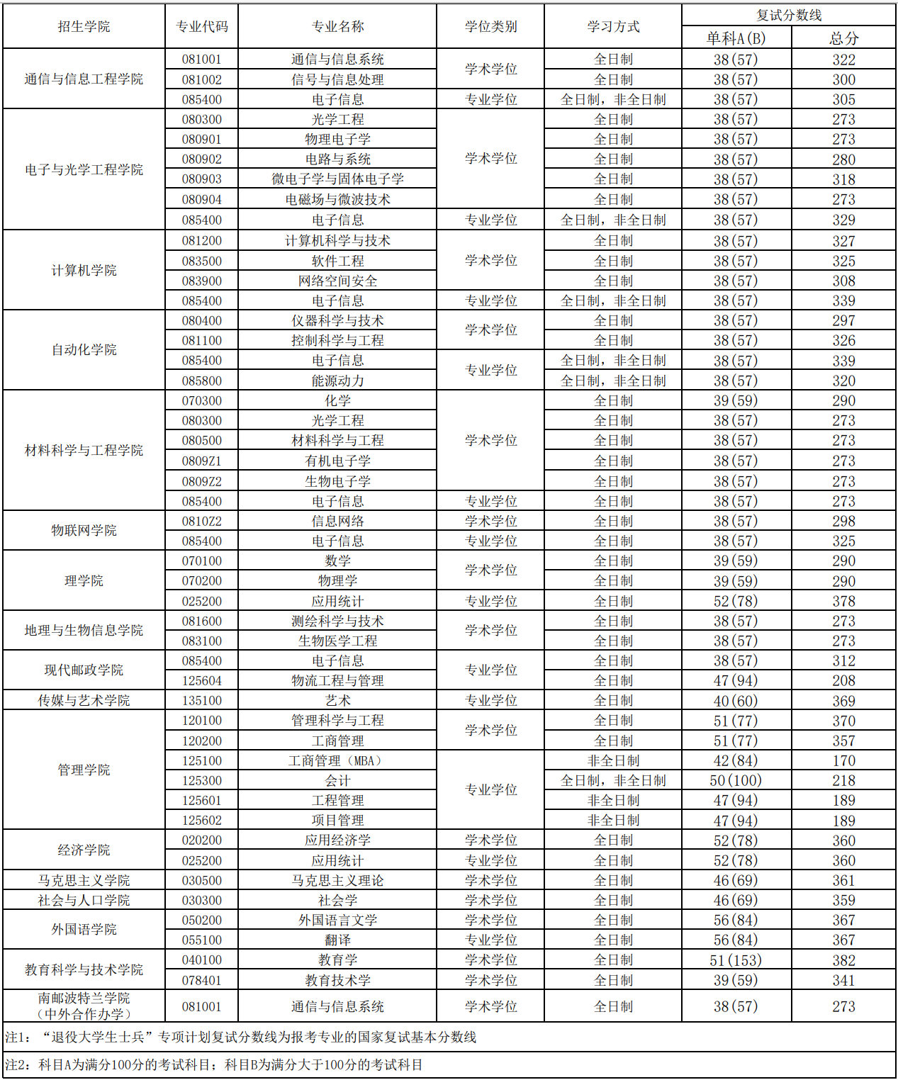 下面我们来看南京邮电大学近几年复试分数线统计:
