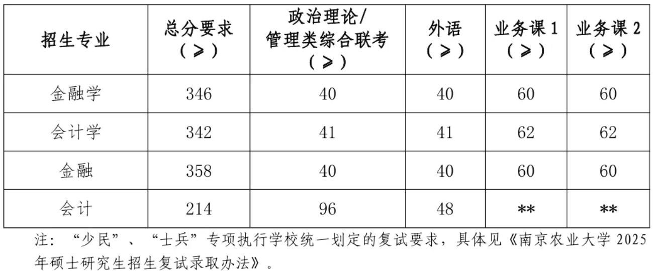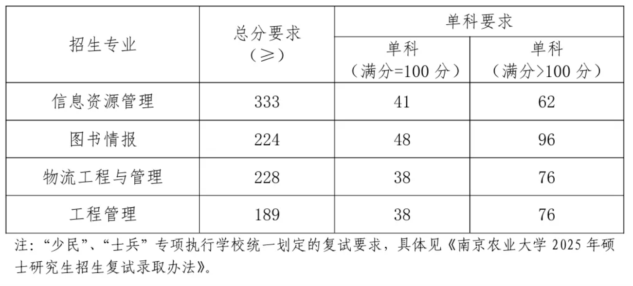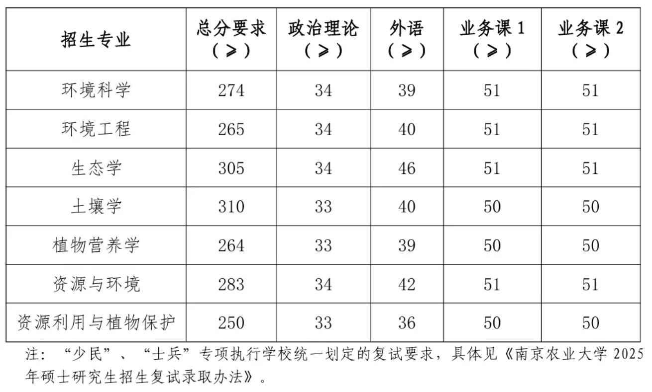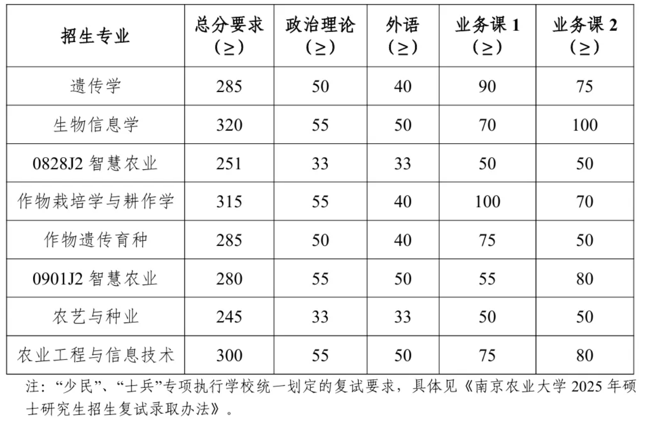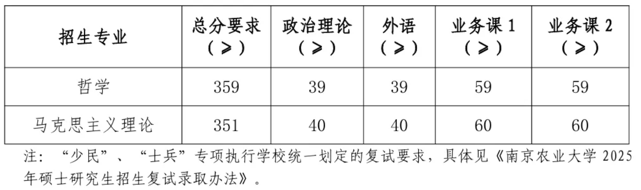 2025年南农硕士研究生复试分数线