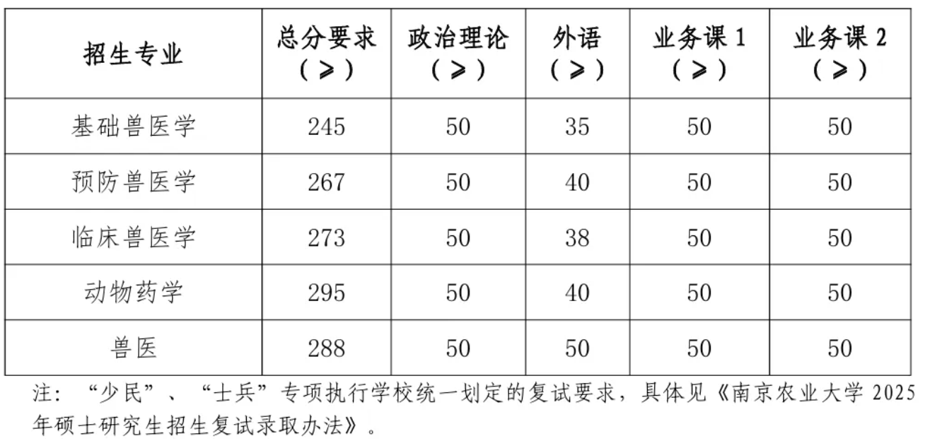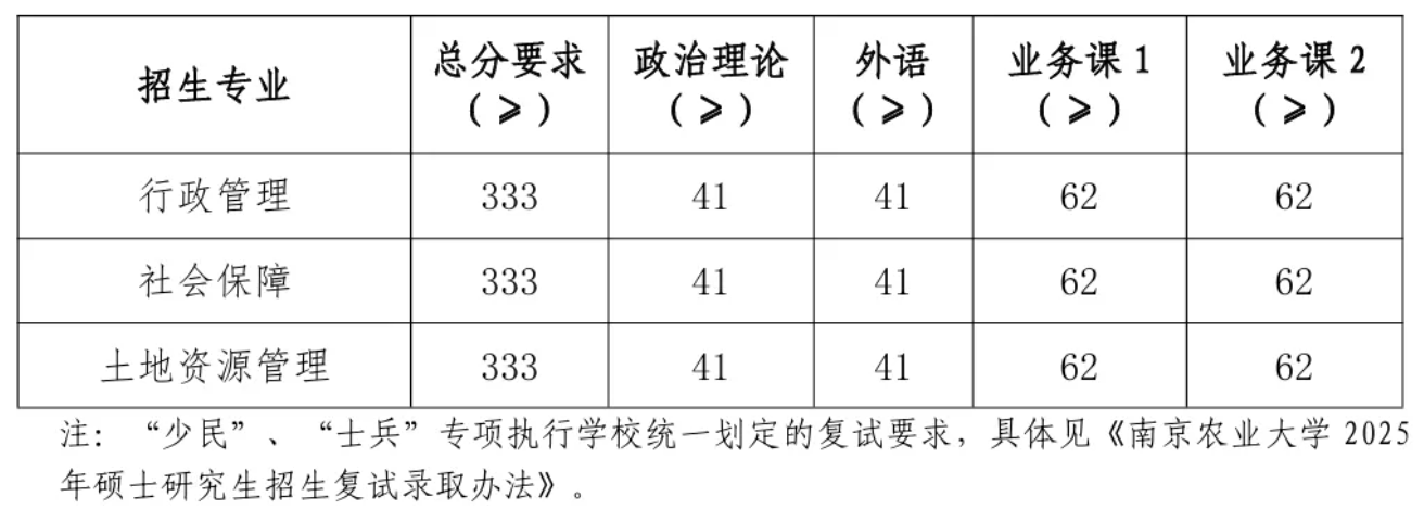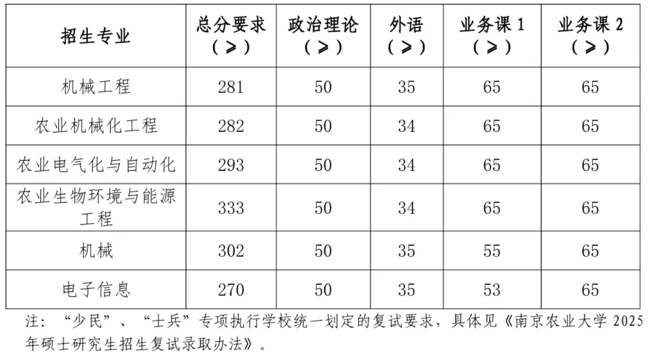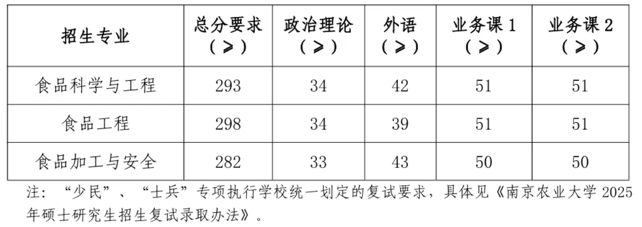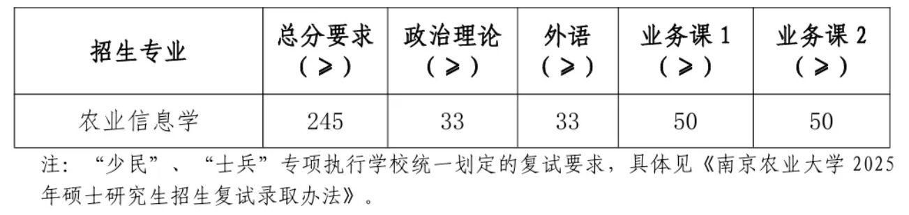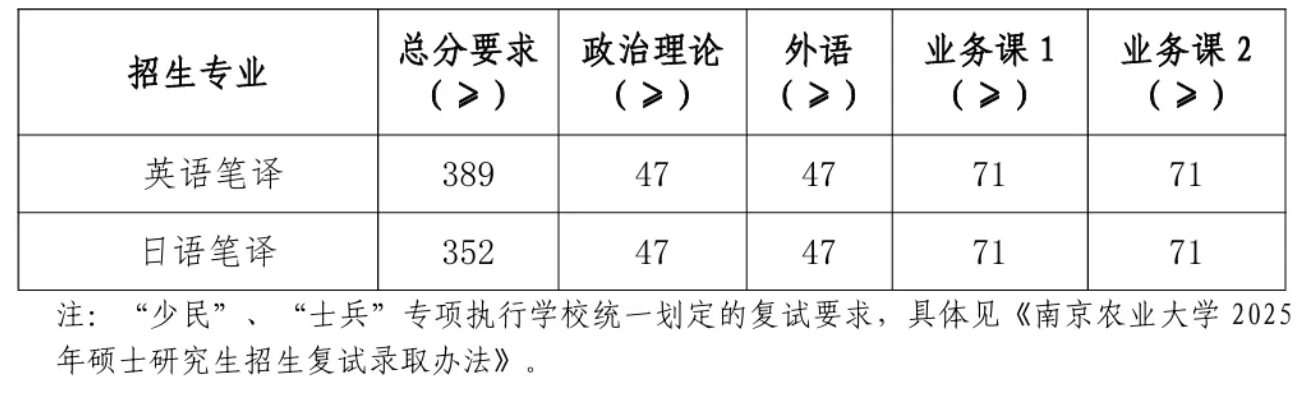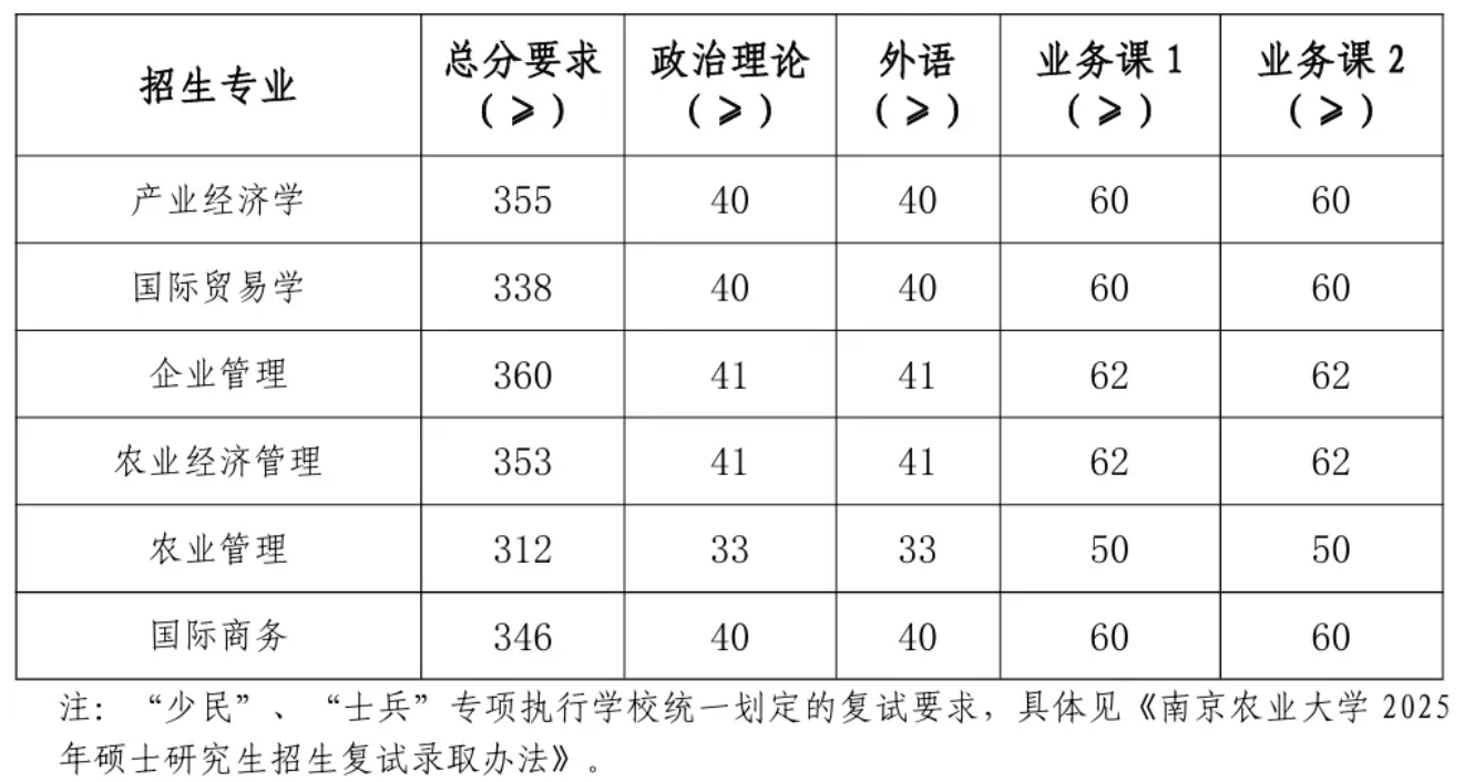 2025年南农硕士研究生复试分数线