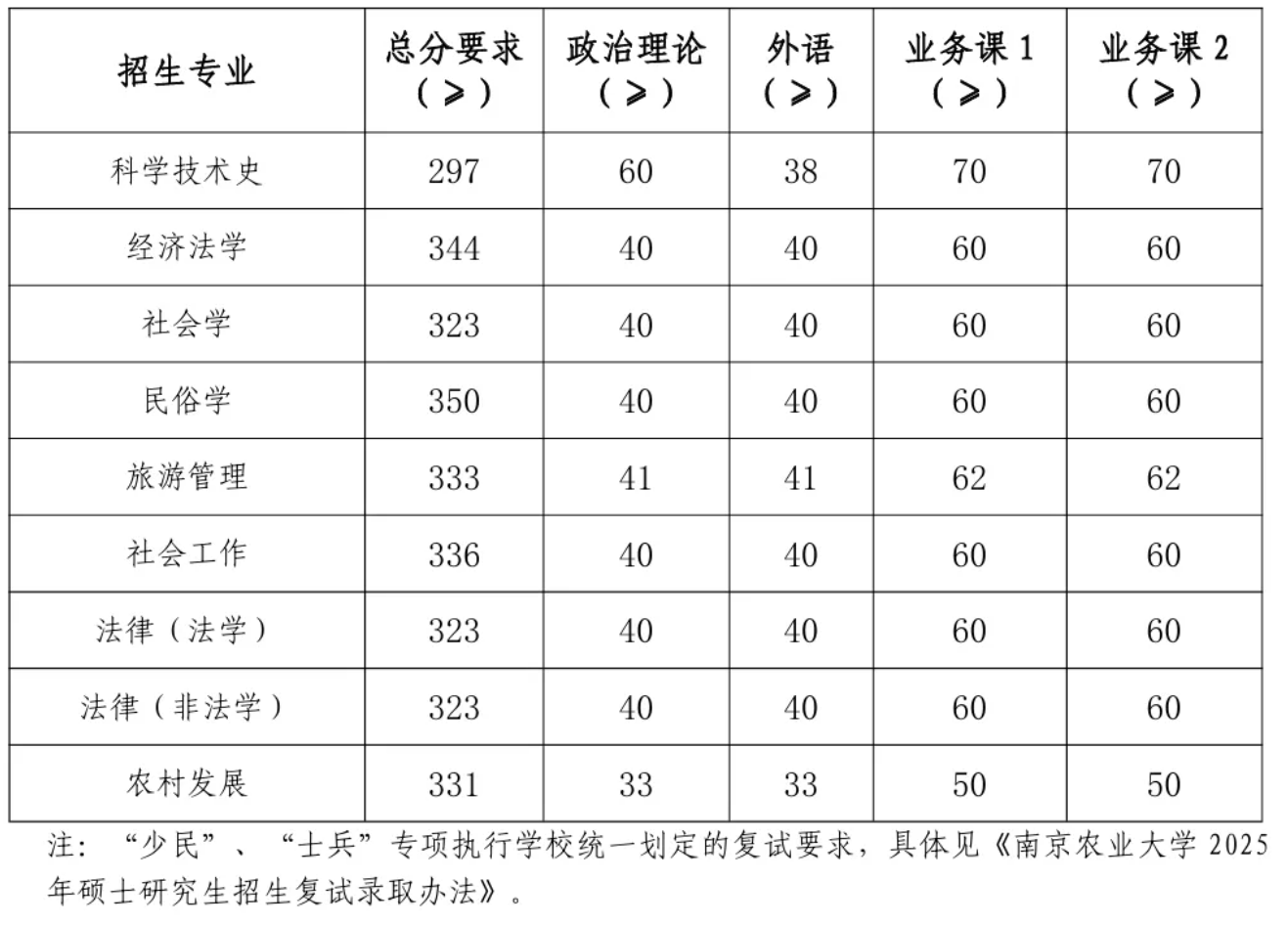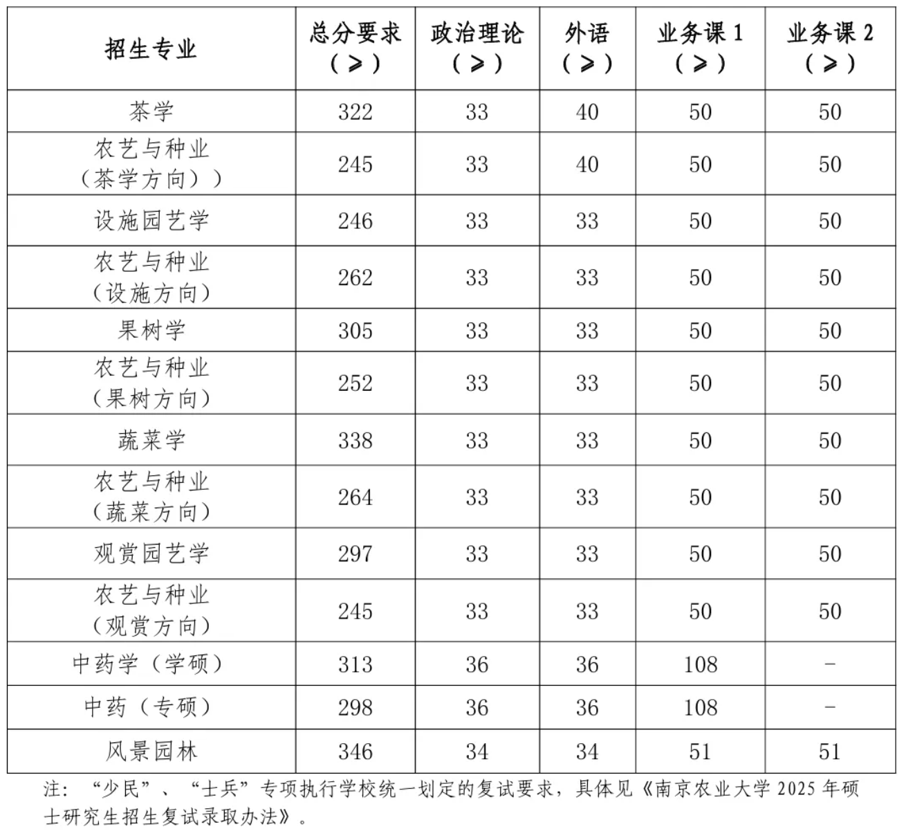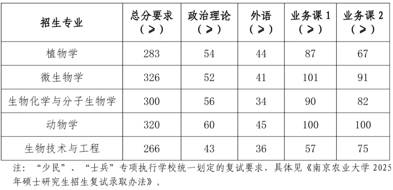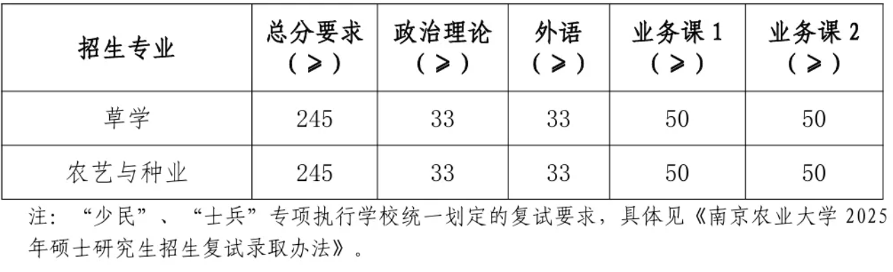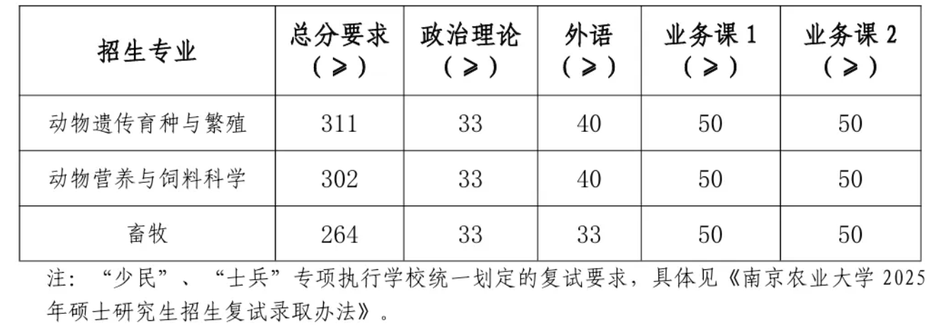 2025年南农硕士研究生复试分数线