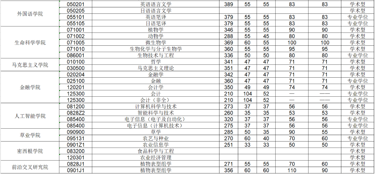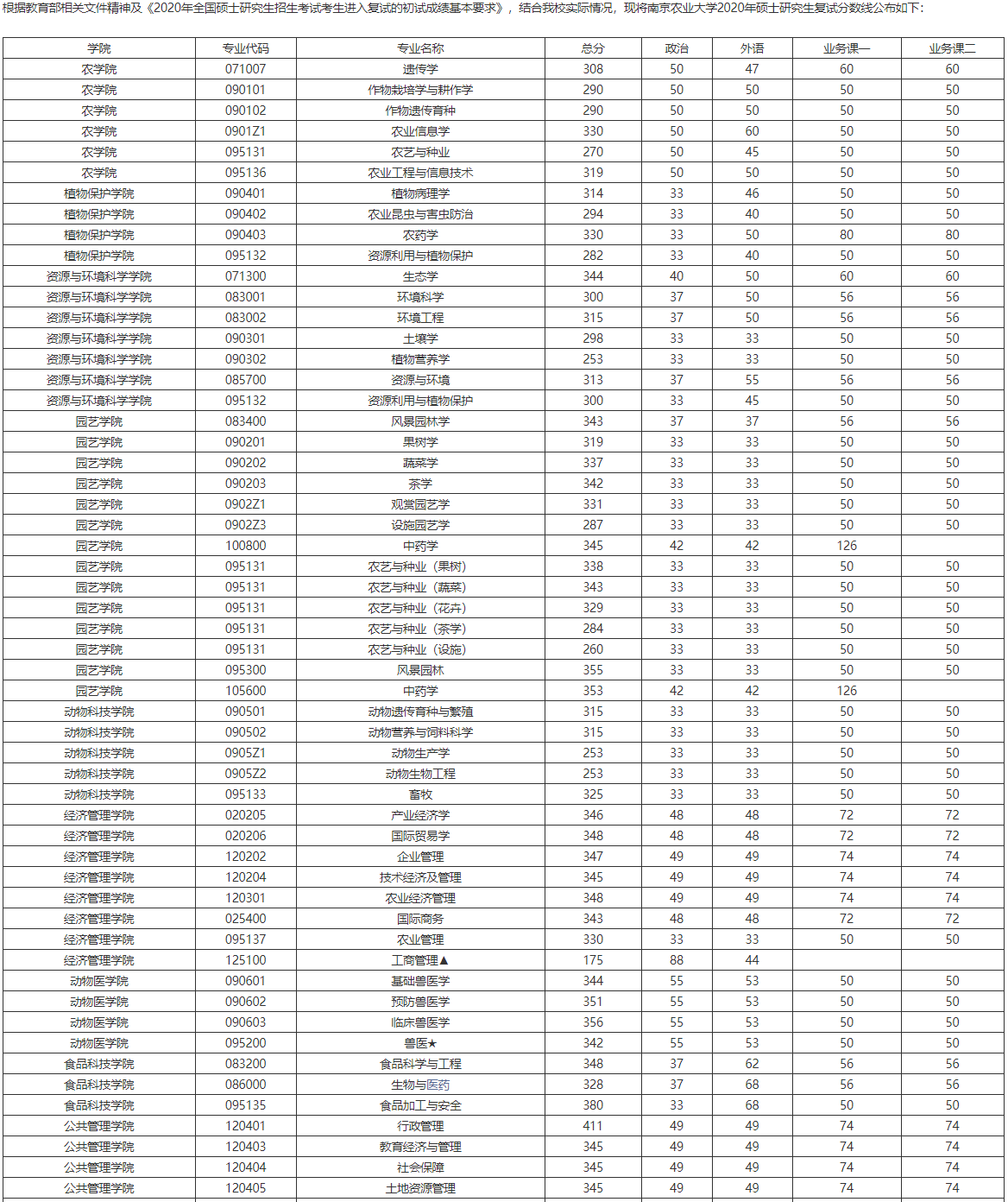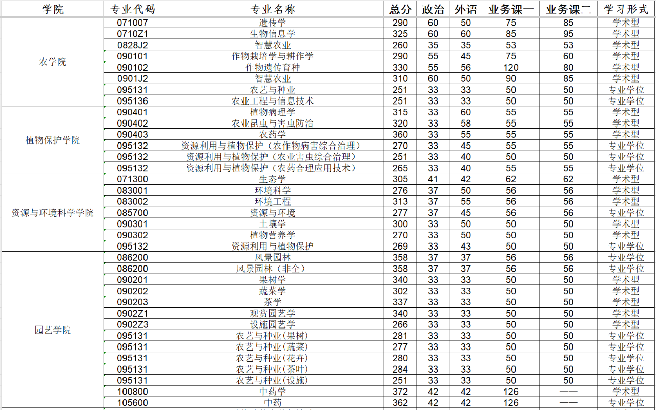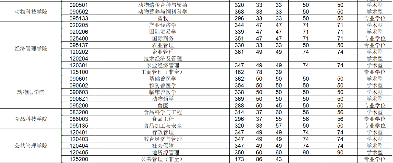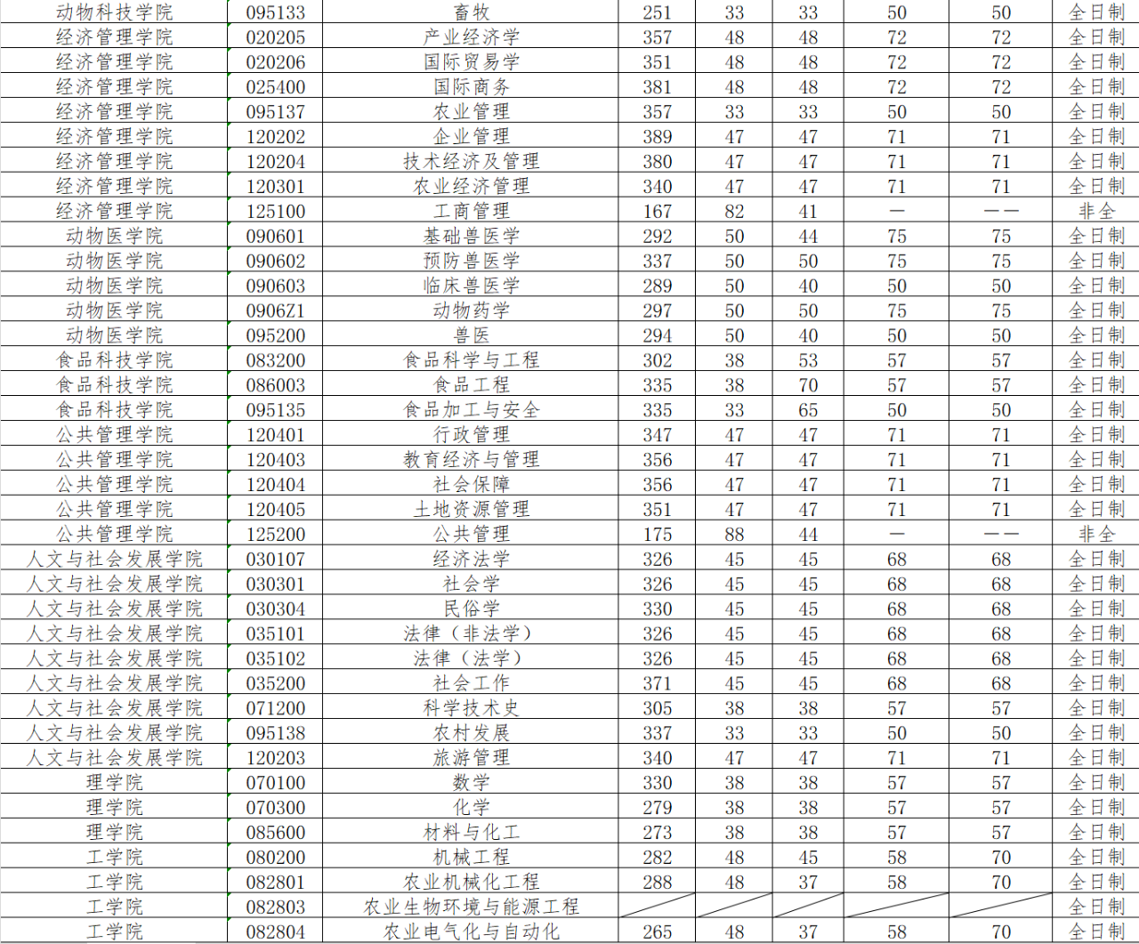2020年南京农业大学研究生分数线