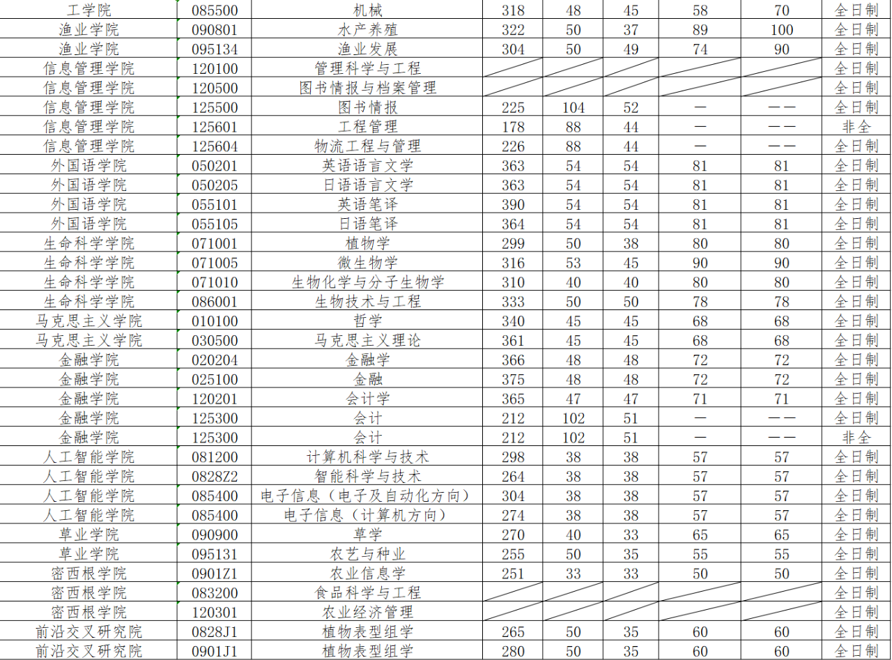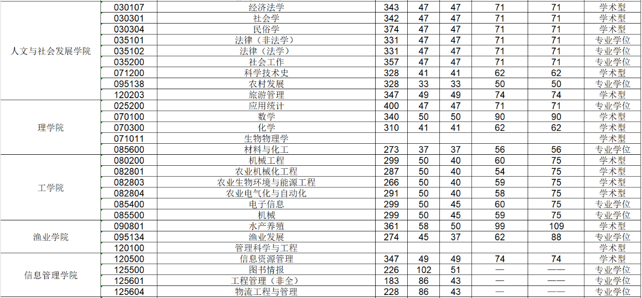下面我们来看南京农业大学近几年复试分数线统计: