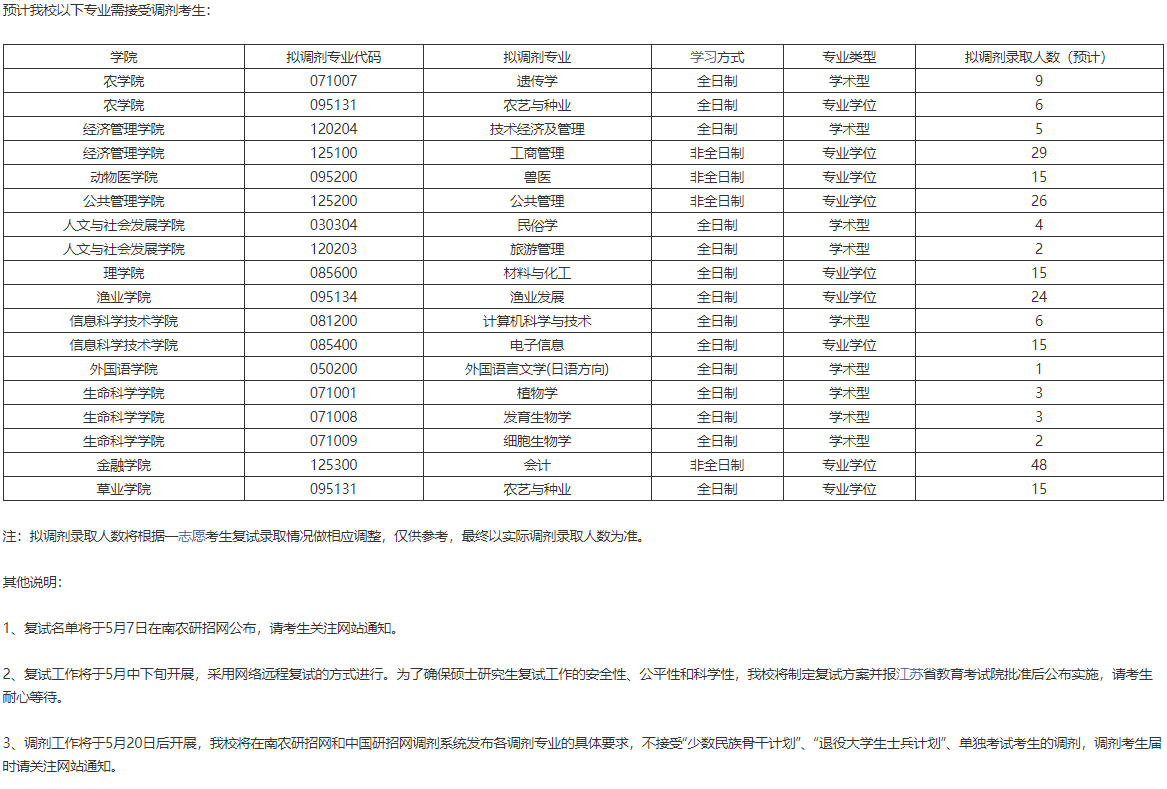 2024年南农硕士研究生复试分数线