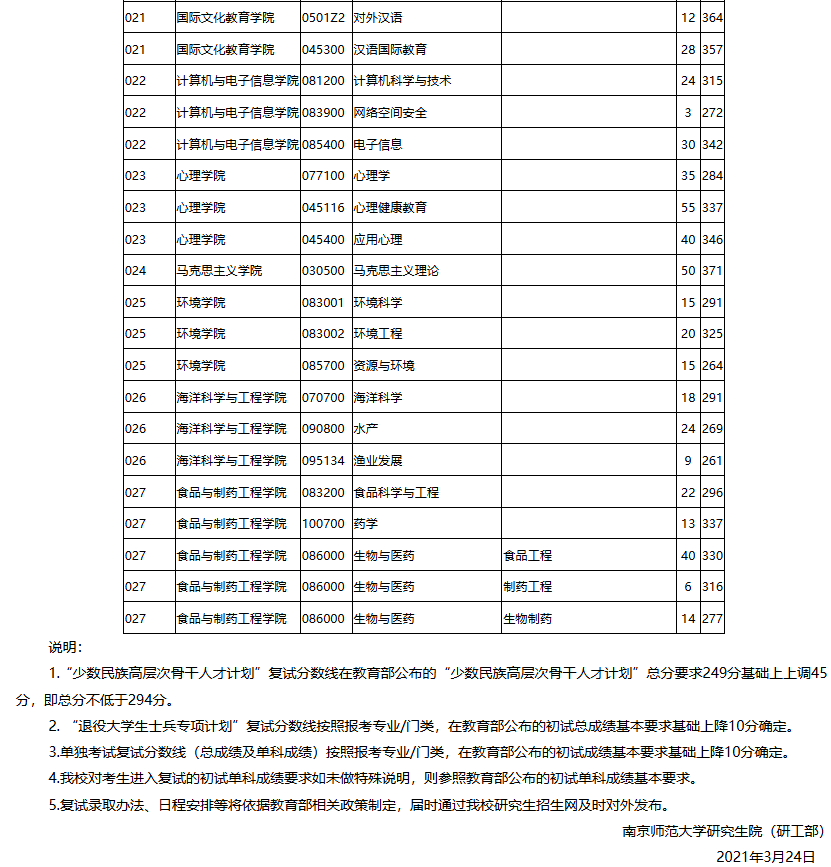 2021年南师大硕士研究生复试分数线