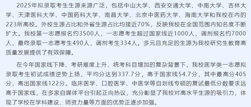拟录取 824 人,一志愿考生 490 人,占比 59.47%,虽低于前列院校,但在医学类专业竞争激烈的背景下,仍体现了一定的志愿稳定性。