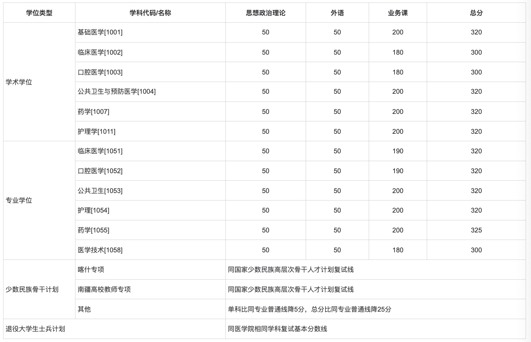 三、医学院复试基本分数线