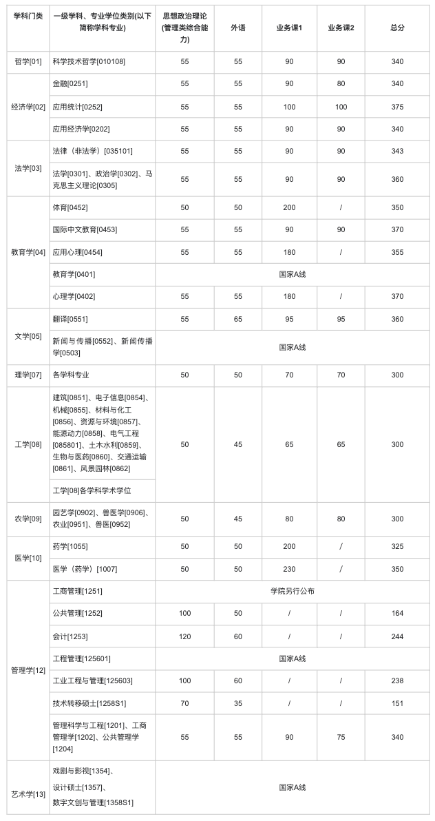 一、 复试基本分数线(不含医学院)