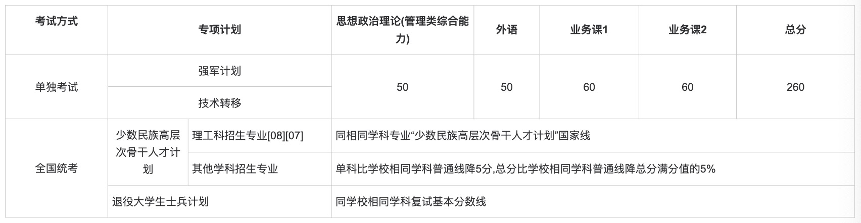 二、 专项计划复试分数线(不含医学院)
