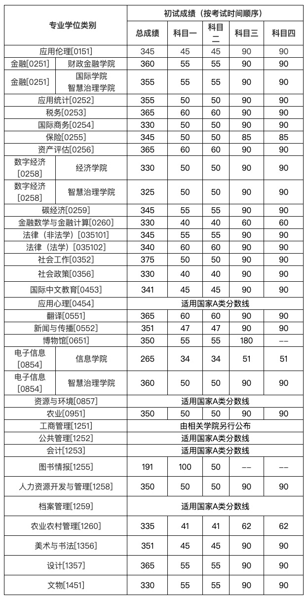 1. 以上为考生进入我校复试的初试成绩基本要求,各学院可根据生源情况调整分数线,详见报考学院有关通知公告。