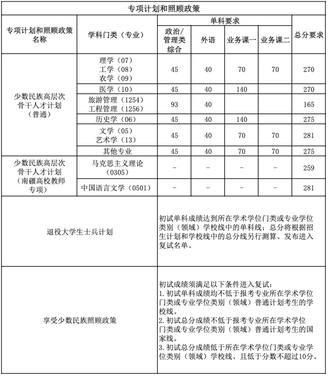 1. 以上为考生进入我校复试的初试成绩基本要求(即学校线),各学院可在不低于学校复试基本要求的基础上,根据生源和计划情况确定本学院普通计划考生进入复试的初试成绩要求。各学院考生进入复试的初试成绩要求将陆续在学院网站发布,请随时关注学院网站发布的最新信息。