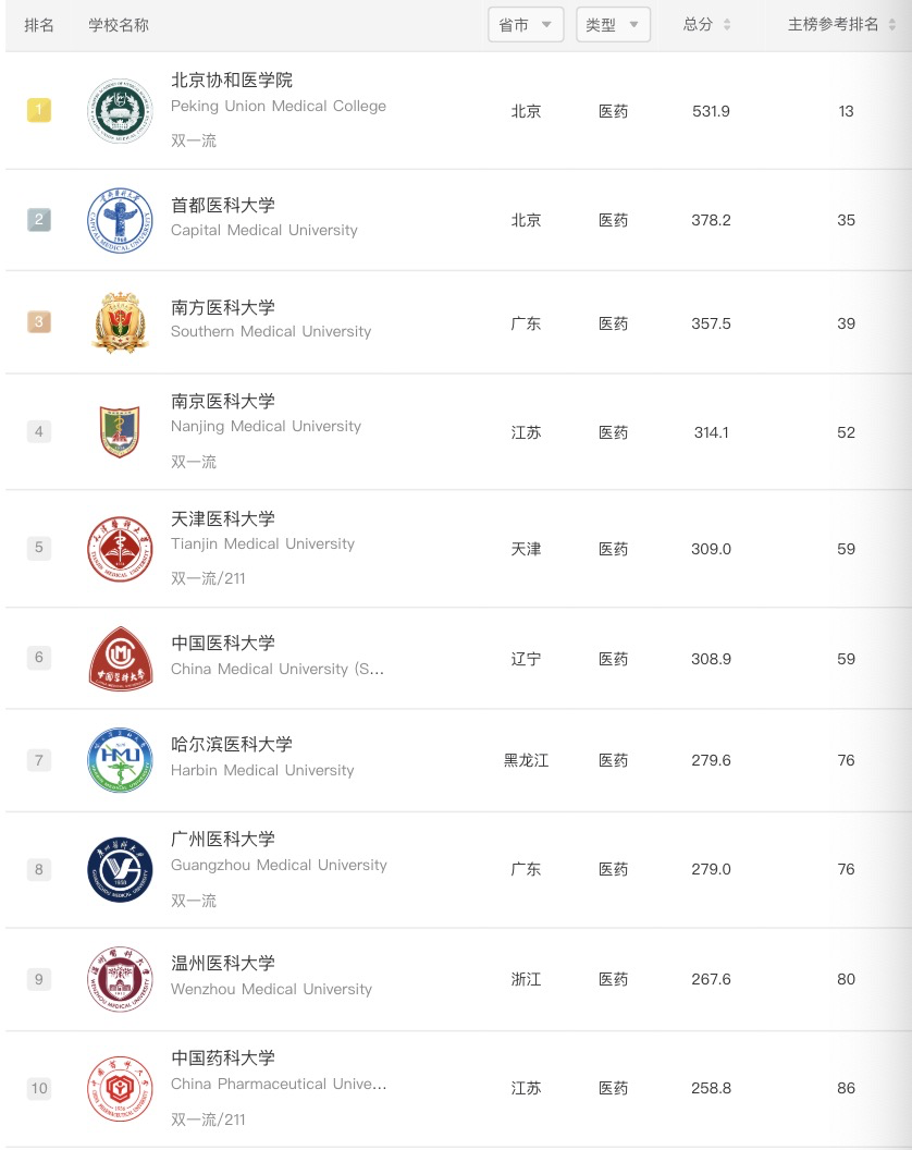 除了主榜外,软科还发布了多个单科性大学排名和非公办高校排名: