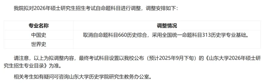 中国史和世界史取消自命题科目660历史综合,采用全国统一命题科目313历史学专业基础。