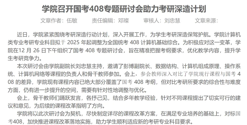 计算机类专业考研专业科目拟于2025年起调整为全国统考408计算机基础综合。