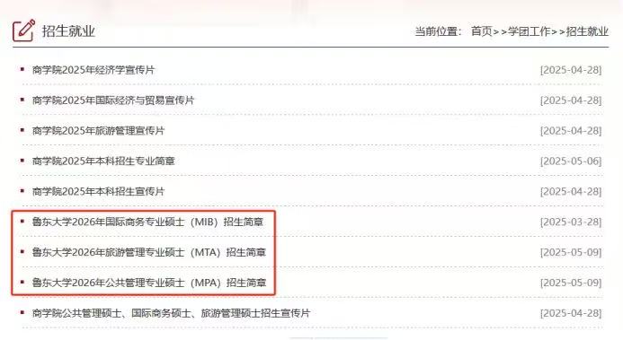 鲁东大学发布了2026年公共管理(MPA)、国际商务(MIB)、旅游管理(MTA)招生简章。