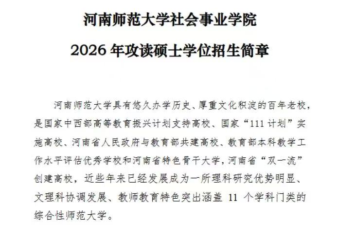 河南师范大学社会事业学院发布了2026年攻读硕士学位招生简章。