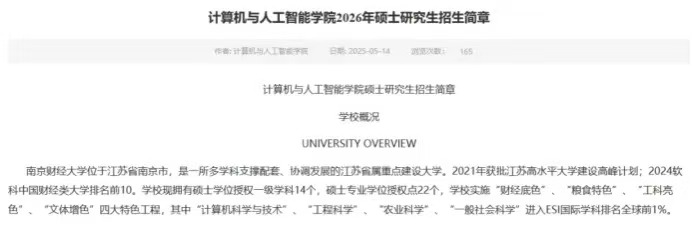 南京财经大学计算机与人工智能学院发布了2026年硕士研究生招生简章。