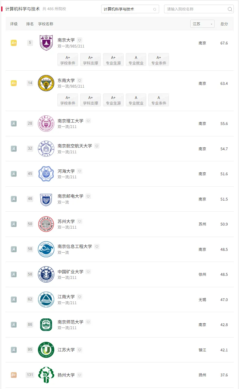 总体来看,江苏省高校在计算机科学与技术专业上展现出强劲的竞争力,既有南京大学、东南大学等顶尖985院校领跑,也有南京航空航天大学、苏州大学等特色强校提供高性价比选择。考生在择校时,可结合自身分数、兴趣方向及职业规划,参考软科排名及录取分数线,做出最优决策。