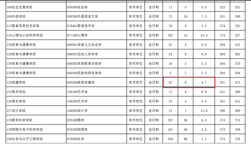 学硕(传播学院):4.7:1(报考42人,录取9人)