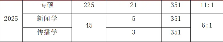 学硕(传播学):2023年报录比10:1(2025年报考人数减少)