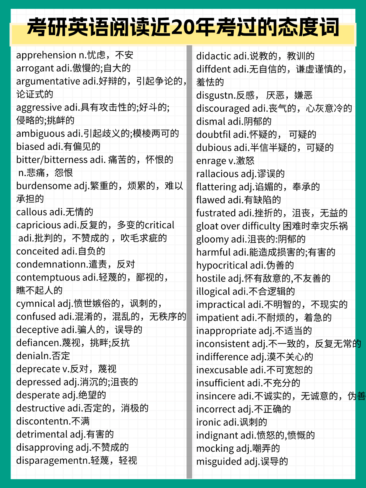 一篇背完考研英语阅读近20年考过的态度词 考研阅读态度词还不太熟练的小伙伴看?过来吖~