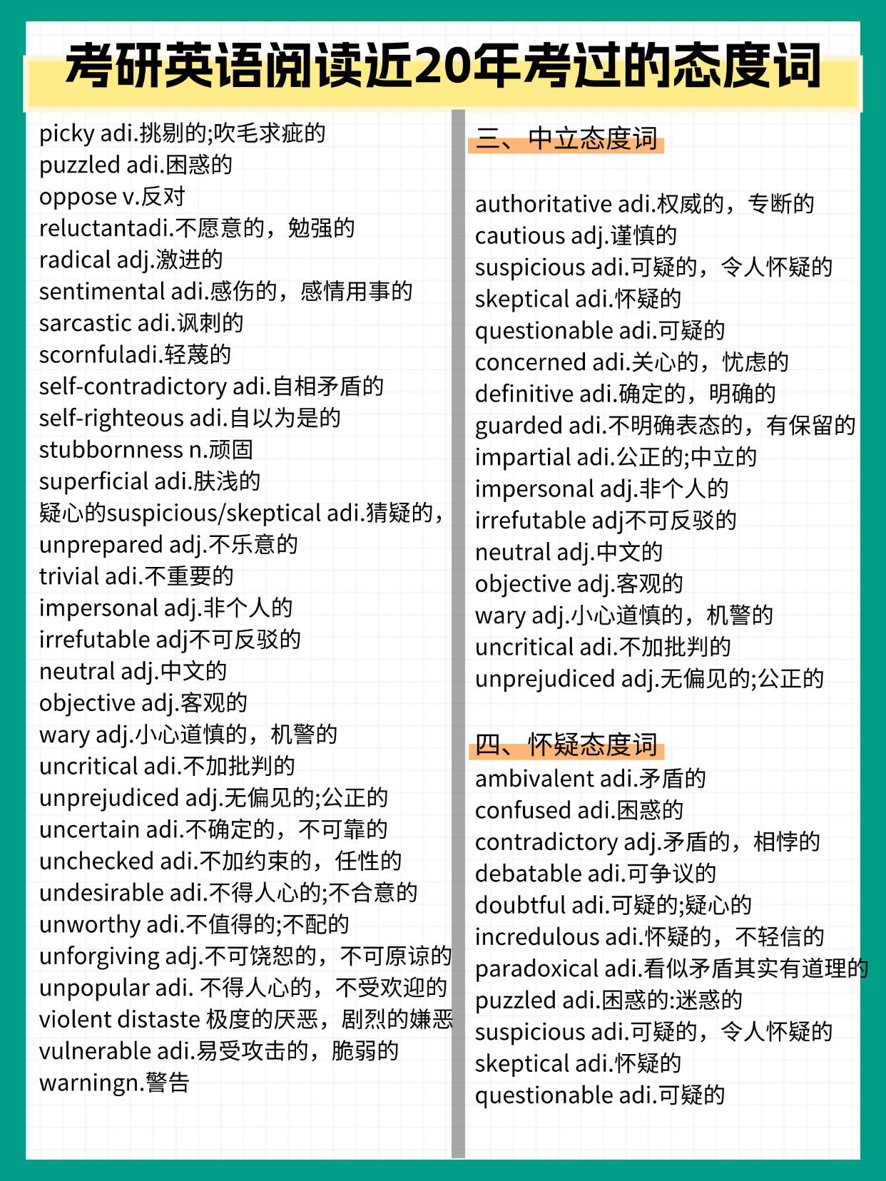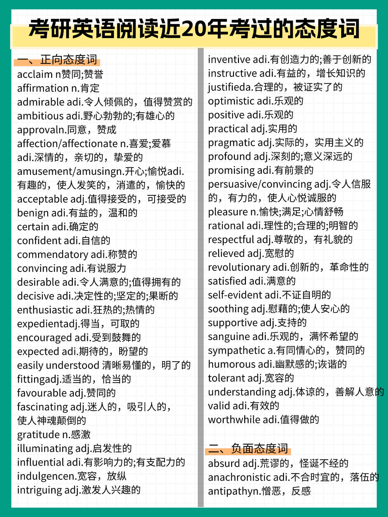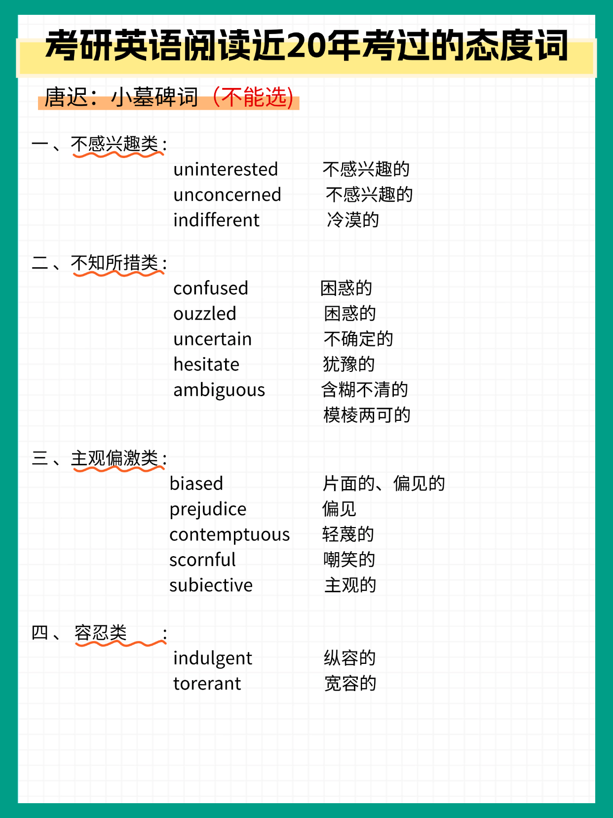 一篇背完考研英语阅读近20年考过的态度词
