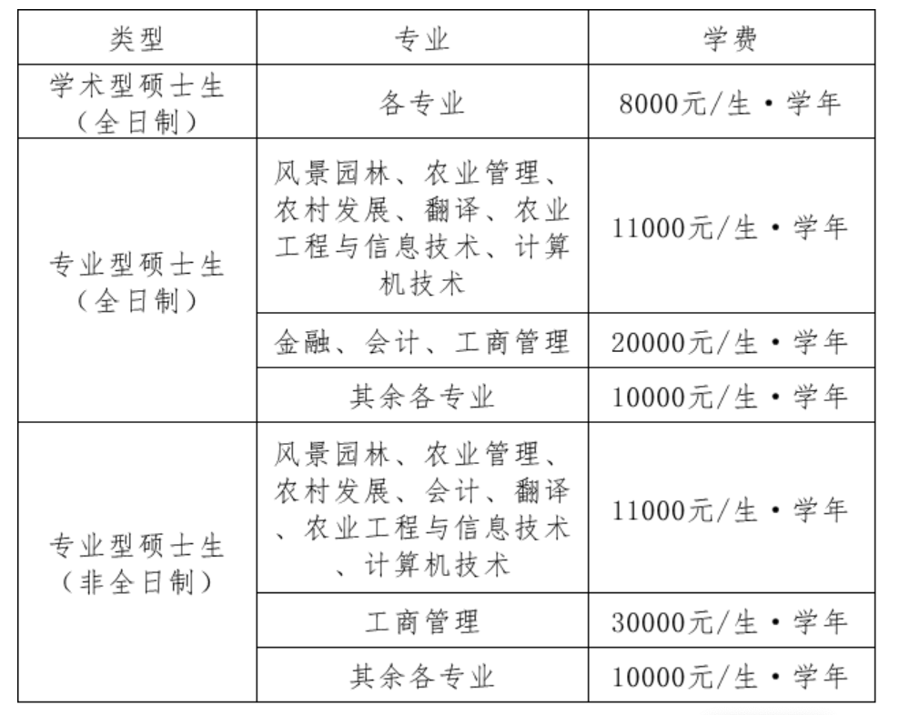 注:非全日制硕士研究生不安排住宿,培养地点同上表全日制硕士研究生。