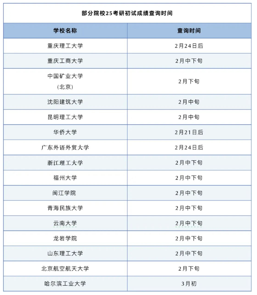 此外,已有部分高校透露初试成绩查询时间,亦集中在2月24日前后。