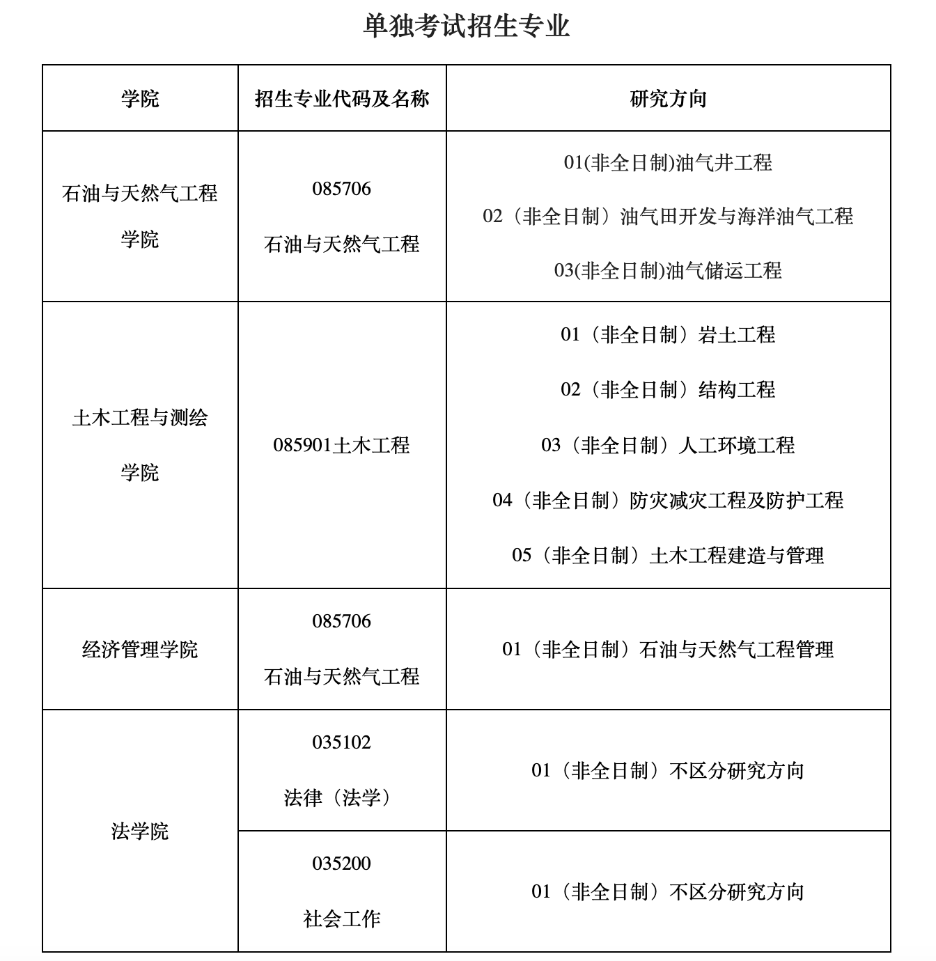 请考生在选择报考我校“退役大学生士兵”专项计划时,务必按照《西南石油大学2026年“退役大学生士兵专项计划”全日制硕士研究生招生专业目录》中的招生专业报考,不在士兵计划招生专业目录上的招生专业,视为报名无效。