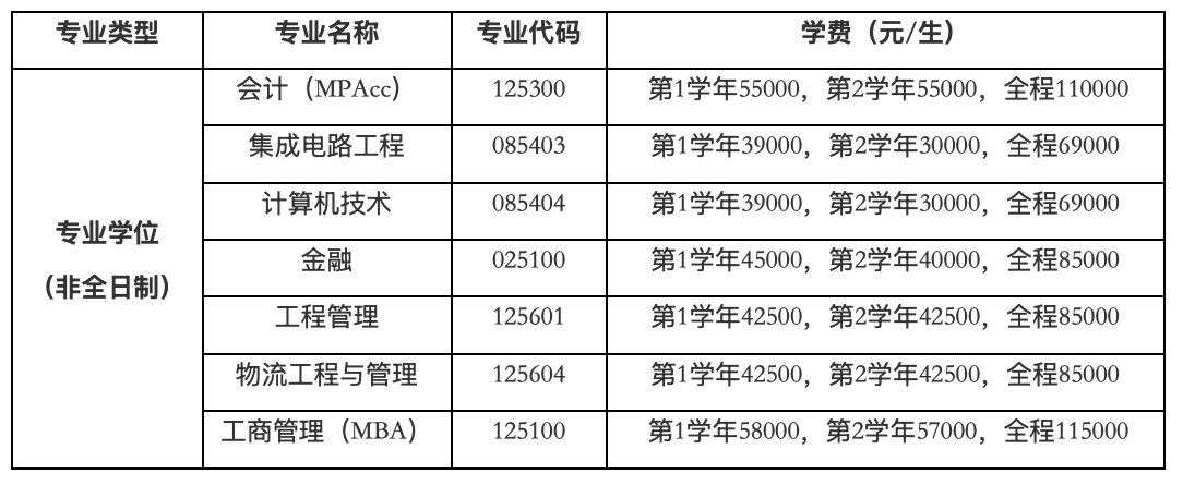 (1)全日制专业学位硕士研究生每生每年学费10000元(不含中外合作办学项目)。中外合作办学项目学费将在各自单独的招生指南中说明。