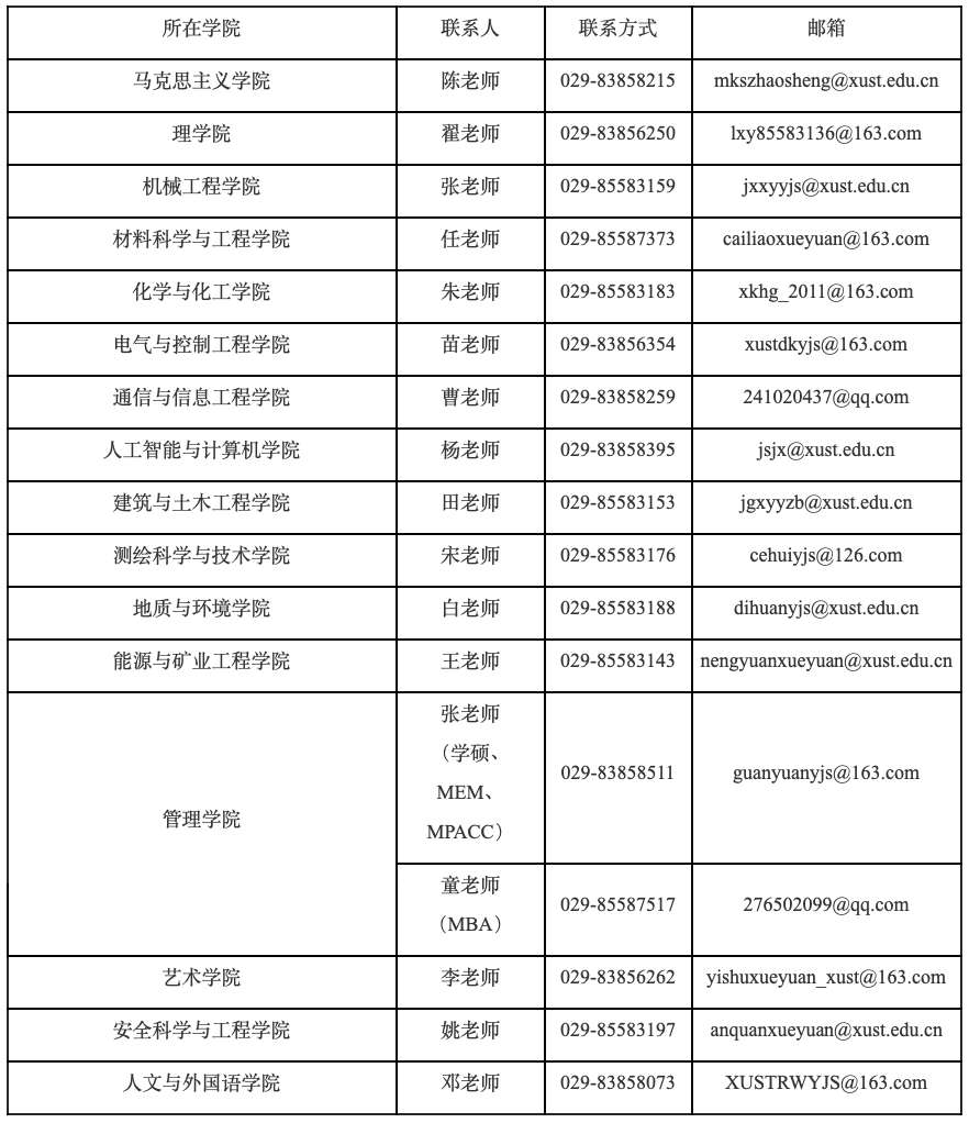 通信地址:西安市雁塔中路58号西安科技大学研究生院招生办公室