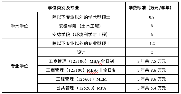 (一)非全日制硕士生学费标准与相同专业全日制硕士生学费标准相同,详见下表。