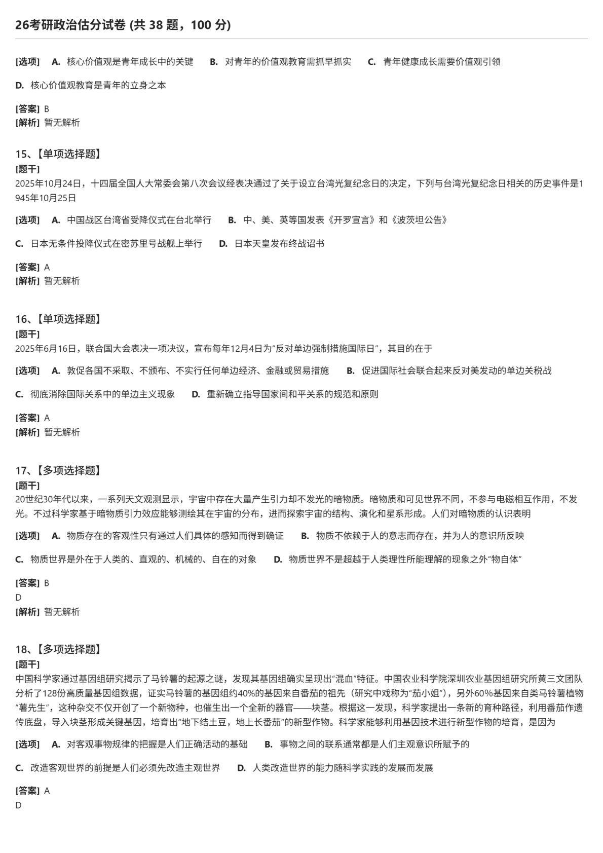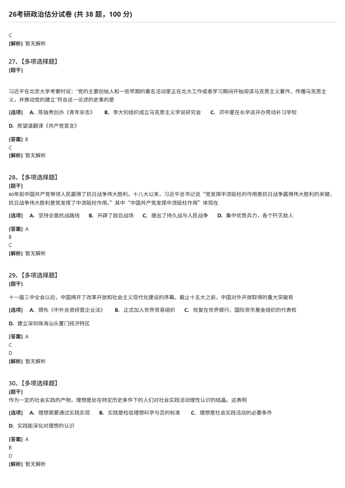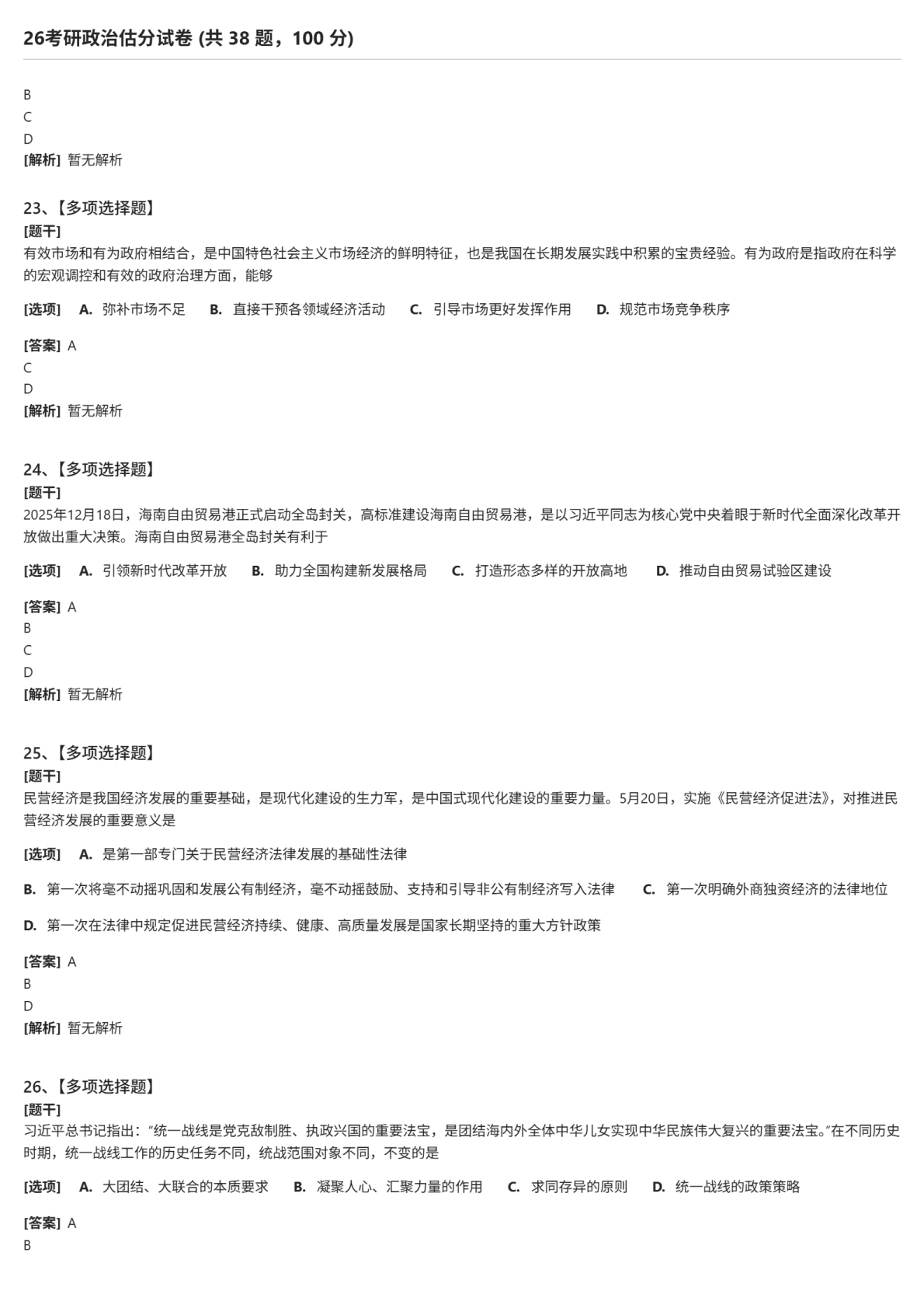 本文主要为大家提供2026年考研政治多项填空题试题及答案解析完整版(新东方版)。具体内容如下: