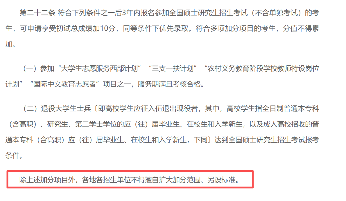 《2026年全国硕士研究生招生工作管理规定》显示,“参与‘选聘高校毕业生到村任职’项目的考生,在初试阶段可享受15分的加分优惠”这一加分政策被取消。