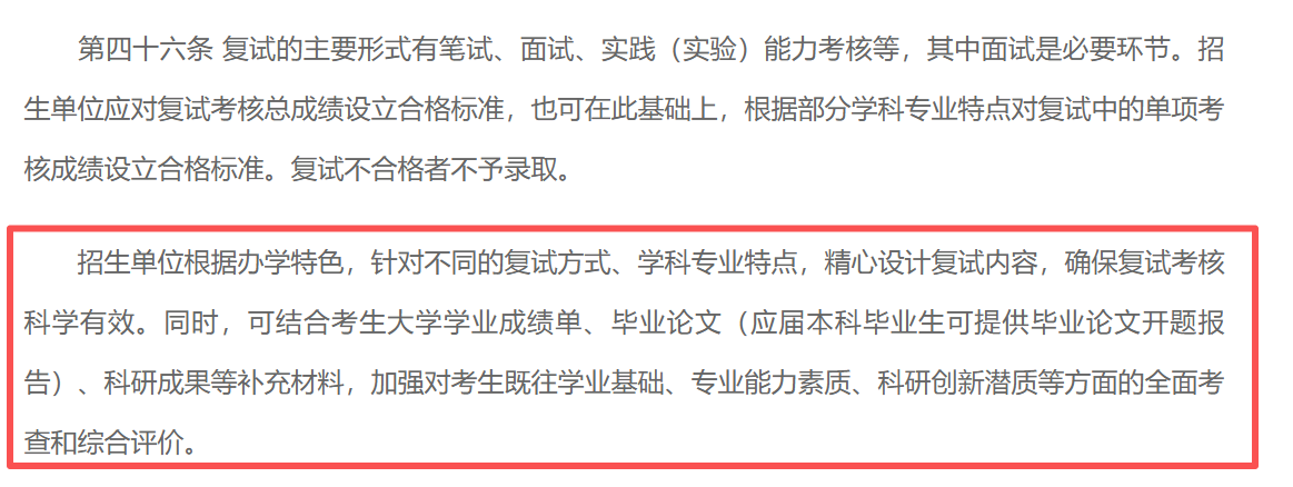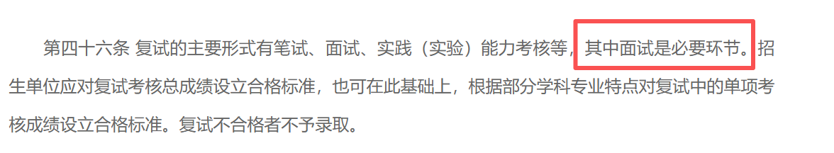《2026年全国硕士研究生招生工作管理规定》明确指出:复试的主要形式有笔试、面试、实践(实验)能力考核等,其中面试是必要环节。
