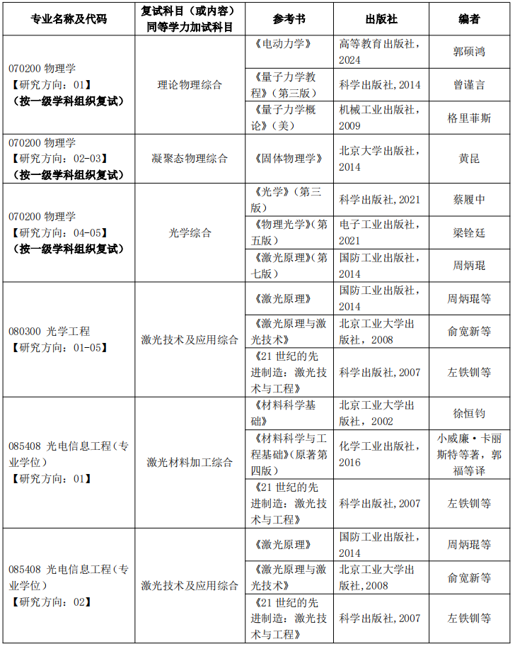 2026年物理与光电工程学院硕士研究生招生考试复试专业科目详见下方: