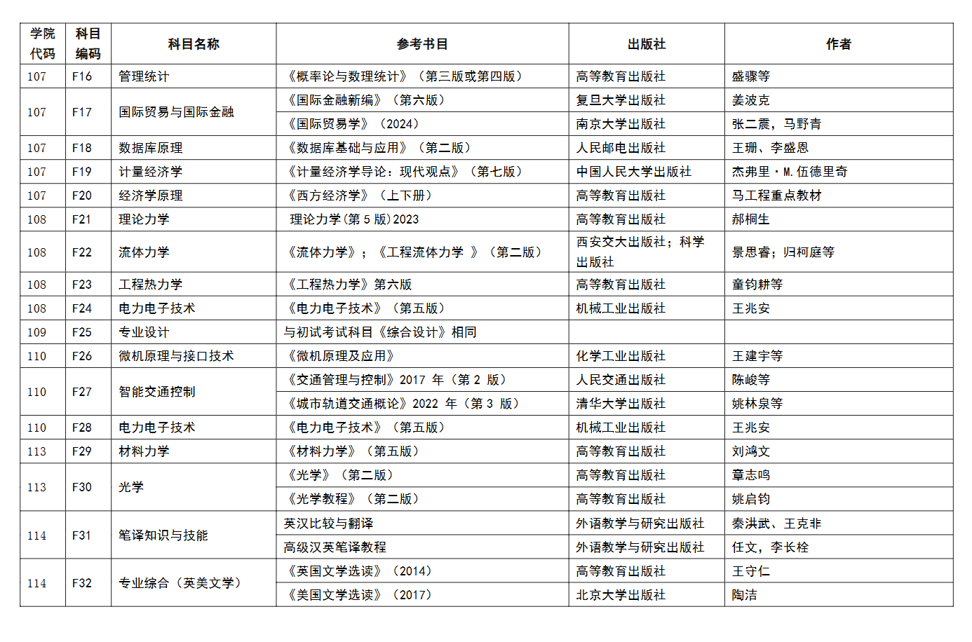 南京理工大学2026年硕士研究生复试笔试科目参考书目录