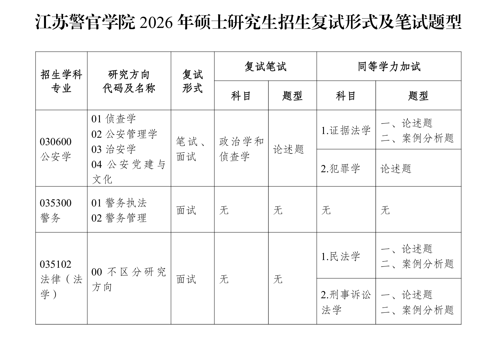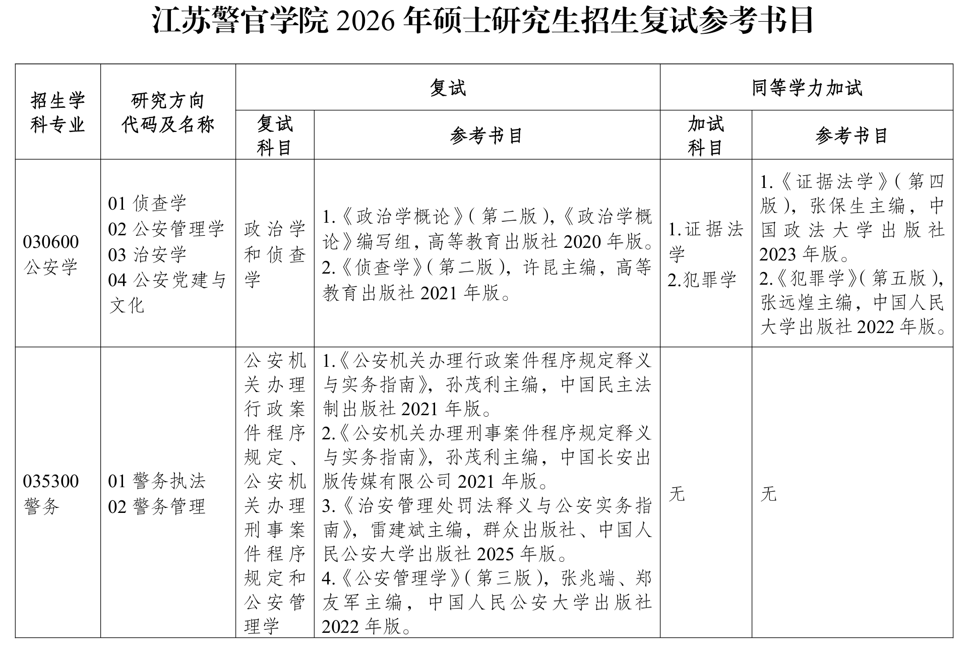 江苏警官学院2026年硕士研究生招生复试形式和复试参考书目的说明