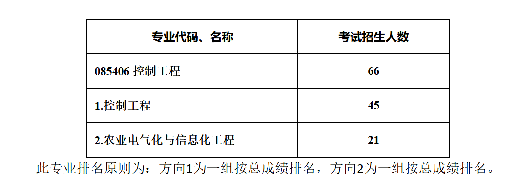 2.按专业分配招生人数或按专业招生的专业按专业总成绩进行排名,成绩相等并列排名;按方向分配招生人数的专业按方向总成绩进行排名,例如: