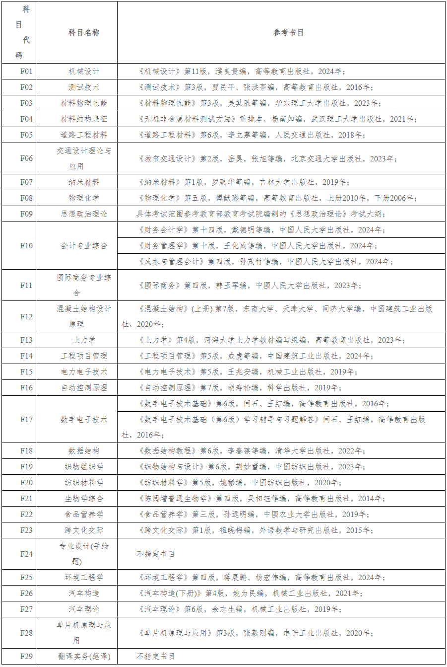 盐城工学院2026年硕士研究生招生考试复试参考书目