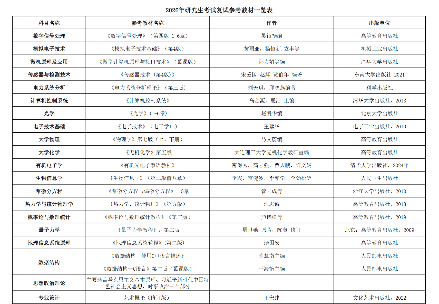南京邮电大学2026年硕士研究生招生考试复试科目参考教材一览表